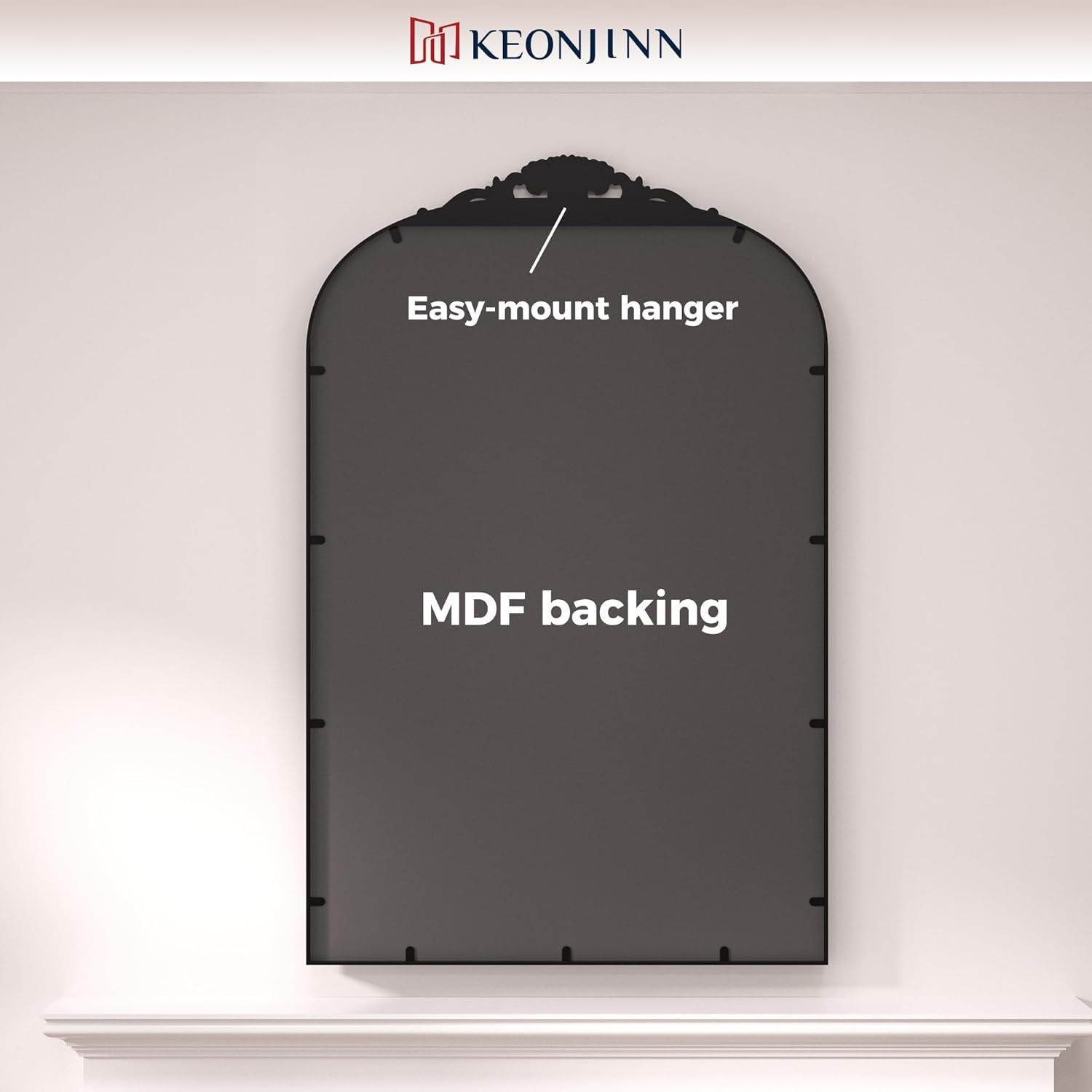 Keonjinn Antique Arch Mirror 20" x 30", Black Ornate Vintage Mirror, Baroque Decorative Mirrors for Mantle, Bathroom, Living Room, Hallway, Fireplace, Flench Cleat Mounting