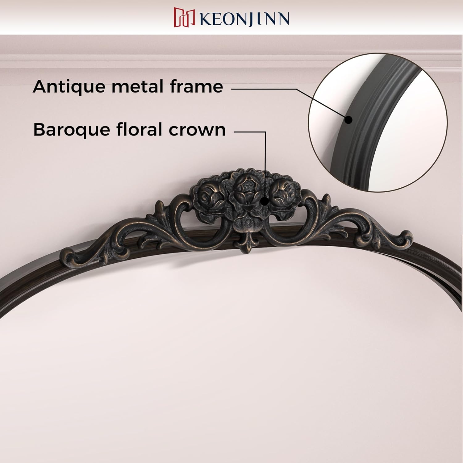 - 【Baroque-inspired Charm】 Keonjinn Antique Arched Mirror is a timeless piece designed to elevate your wall decor. Inspired by the opulence of the Baroque era, this mirror exudes historical charm with its graceful arched design and intricate wooden floral crown, creating a captivating focal point in any room.