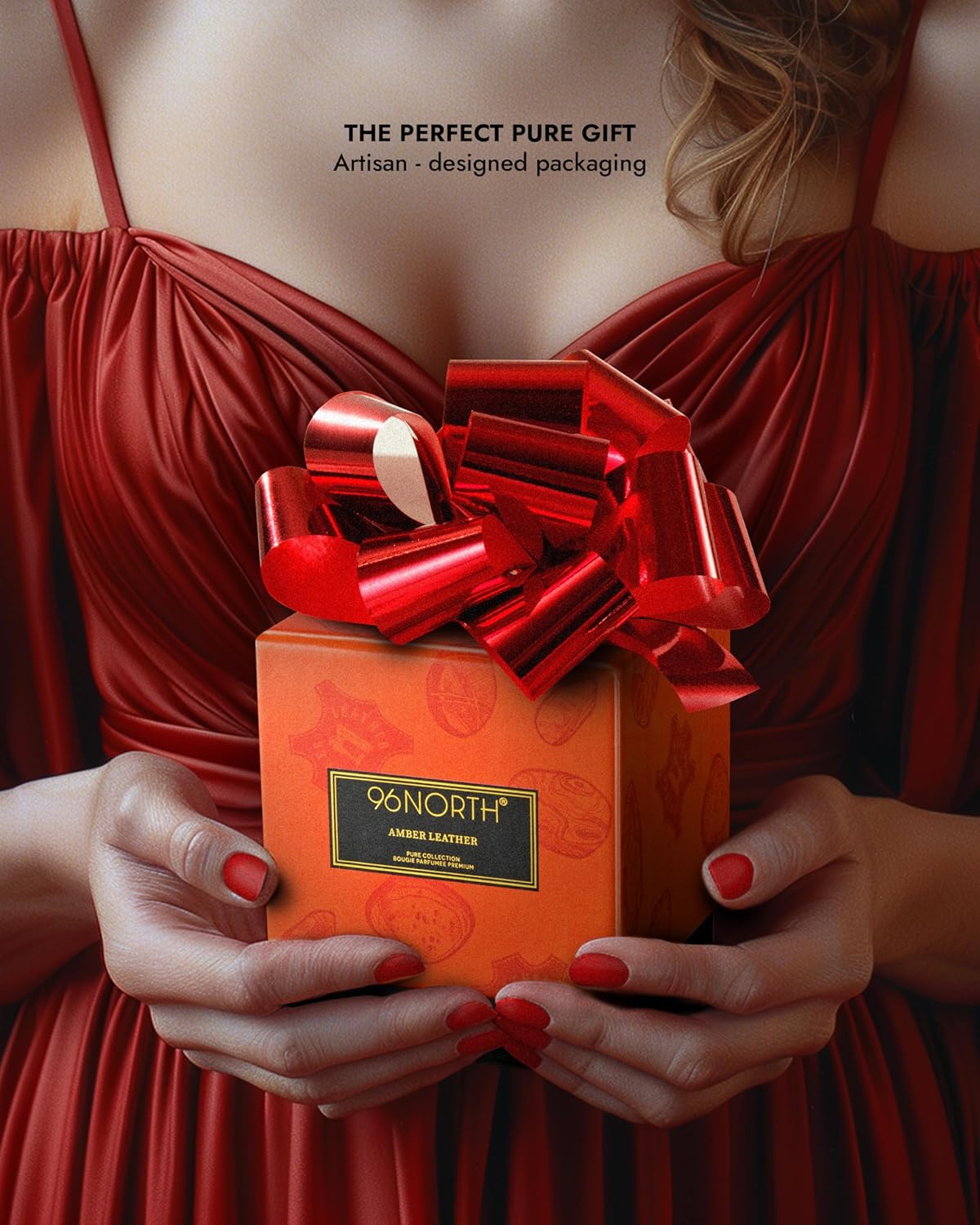 96NORTH | Pure Amber Leather Candle | 100% Natural Soy Wax | One Wick Jar Candle | Natural Fragrance Technology | Non Toxic | Up to 35 Hours Burning Time | Aromatherapy Gift for Men and Women