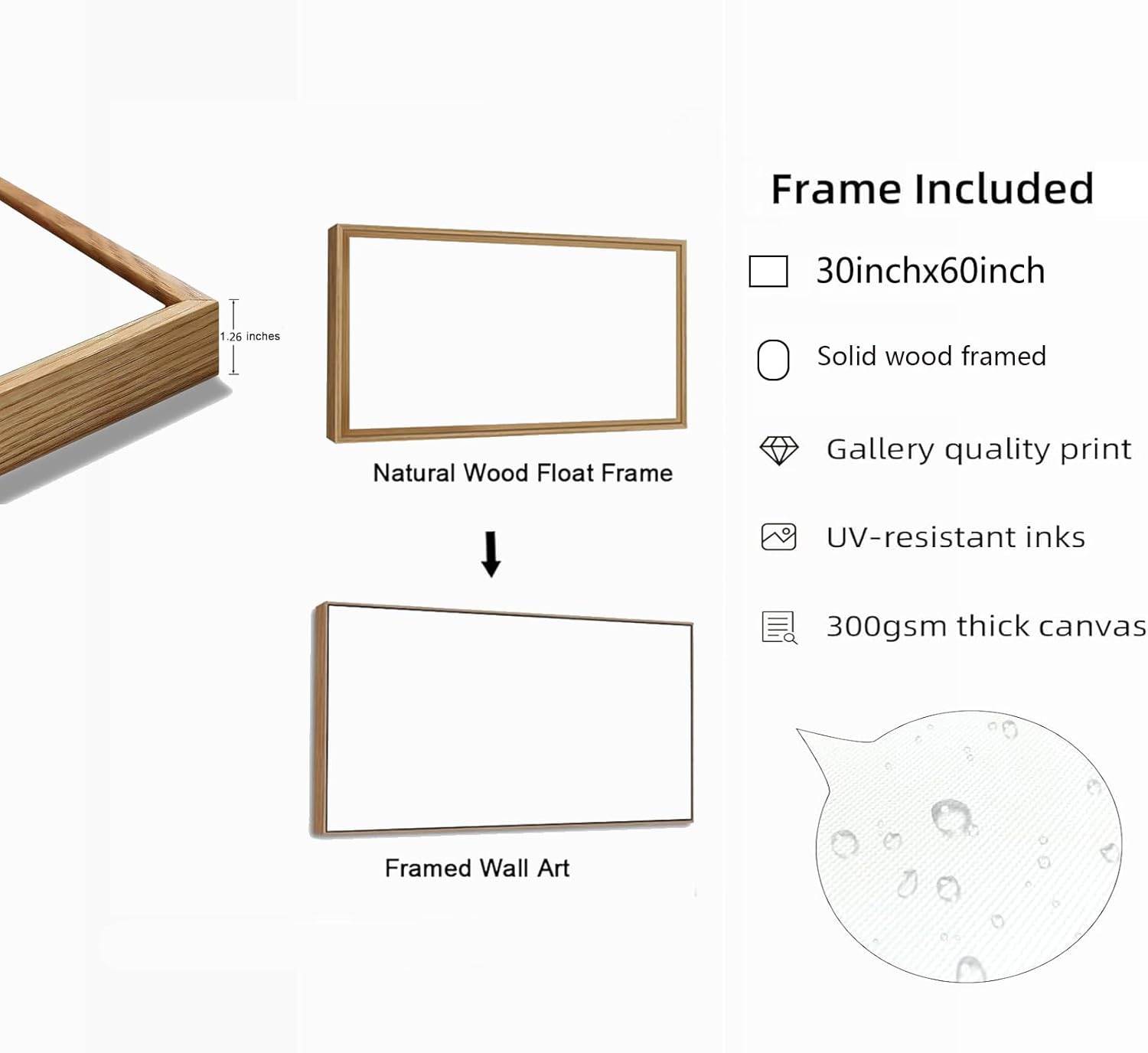- High-quality canvas prints: The canvas prints are made of high-quality polyester canvas and printed with fade-resistant, waterproof inks. The canvas is stretched and framed on a solid wooden frame, ensuring durability and a long-lasting display.
