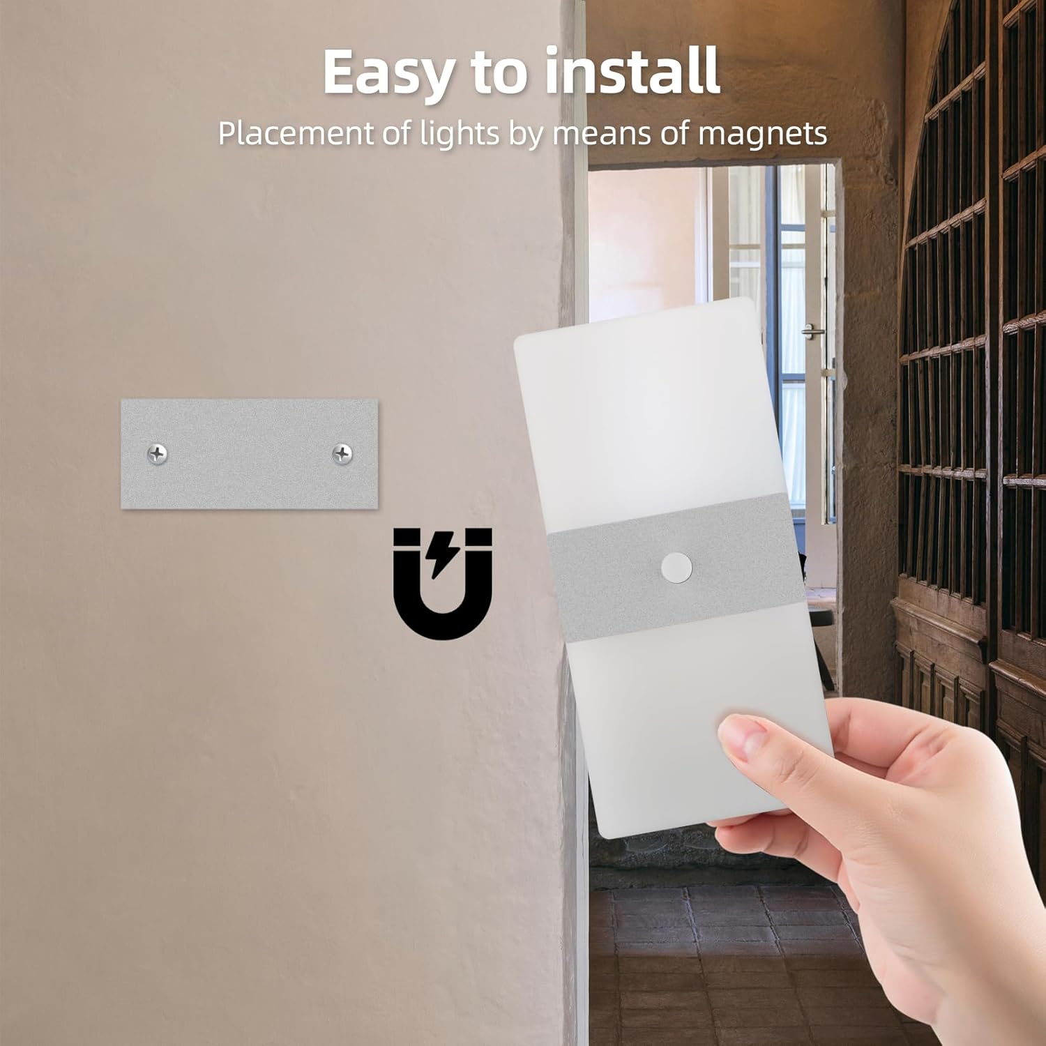 2 Pack Motion Sensor Wall Lights, Morden Silver Decorative LED Indoor Night Light, 3000K Warm Light Battery Operated Wall Sconces for Porch Bedroom Living Room Hallway(Silver)