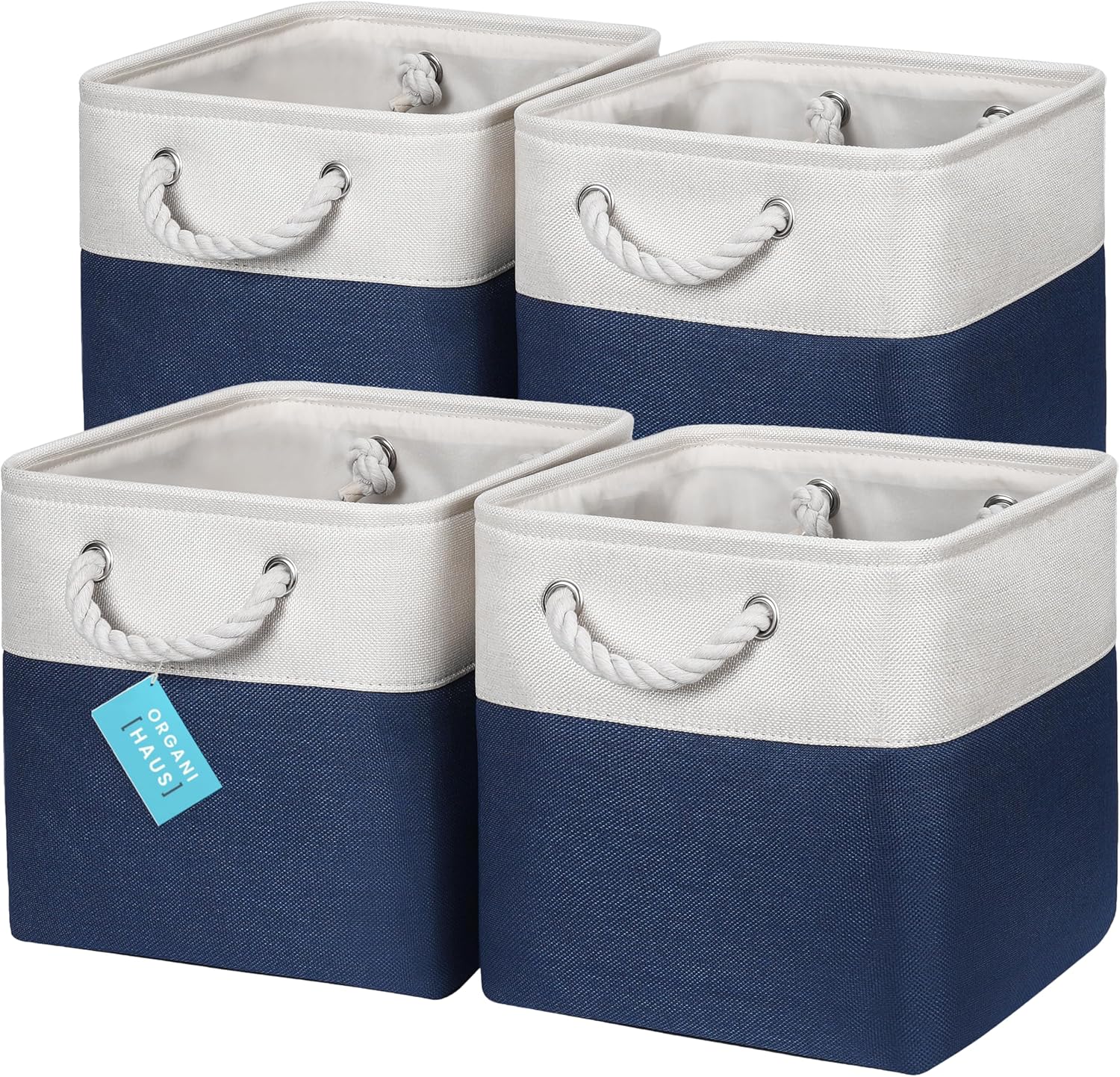 OrganiHaus 11x11 Cube Storage Bins 4 Pack, Foldable Cube Storage Organizer w/ Rope Handles, Collapsible Fabric Bins for Toys, Clothes & Closet Organization, Fabric Square Baskets - Navy Blue