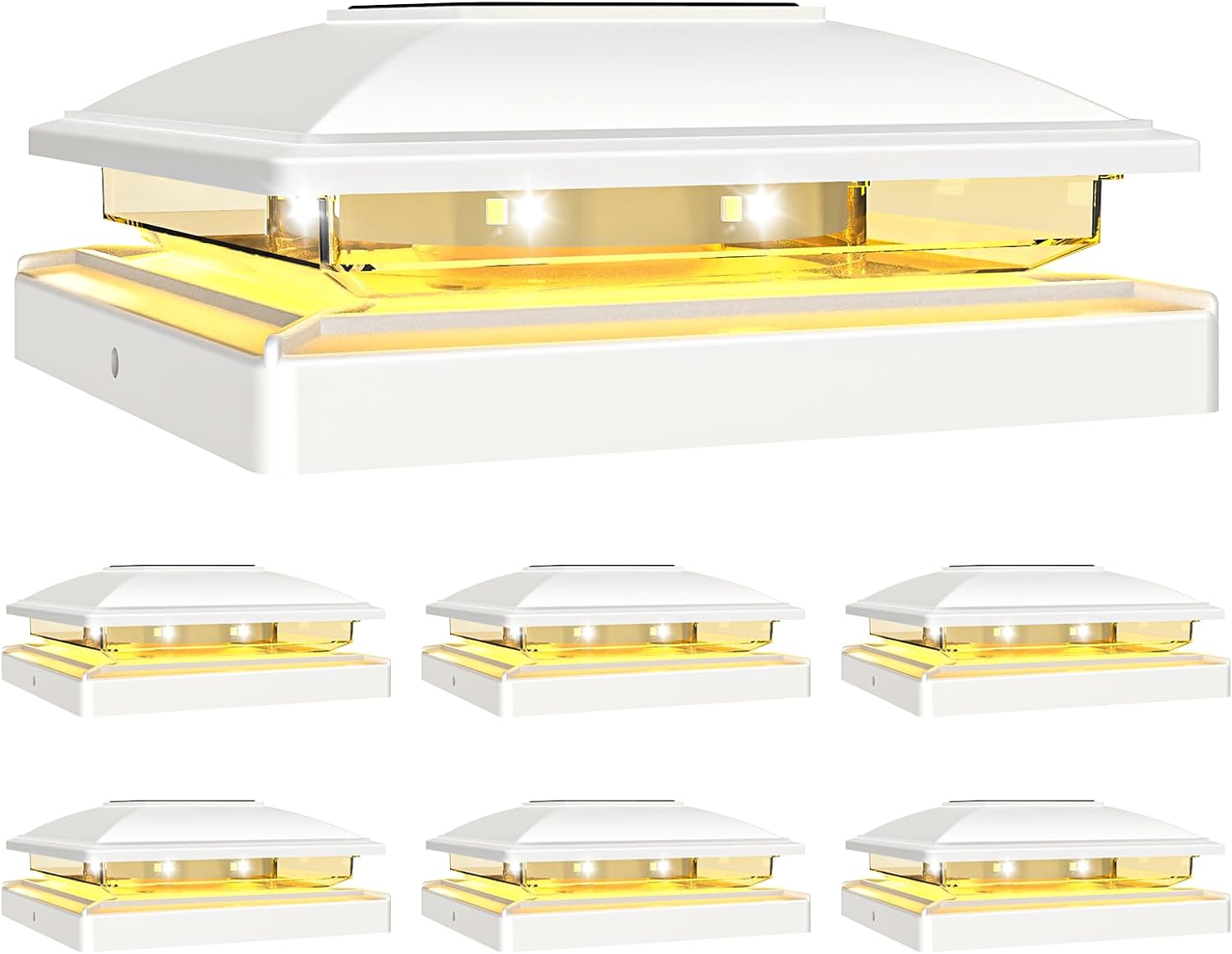 VOLISUN Solar Post Cap Light Outdoor Waterproof 6pack,Solar Fence - Post Lights for 4x4 5x5 6x6 Wooden/Vinyl Post,White Deck Post Cap Light Solar Powered with Warm White for Garden/Patio/Porch