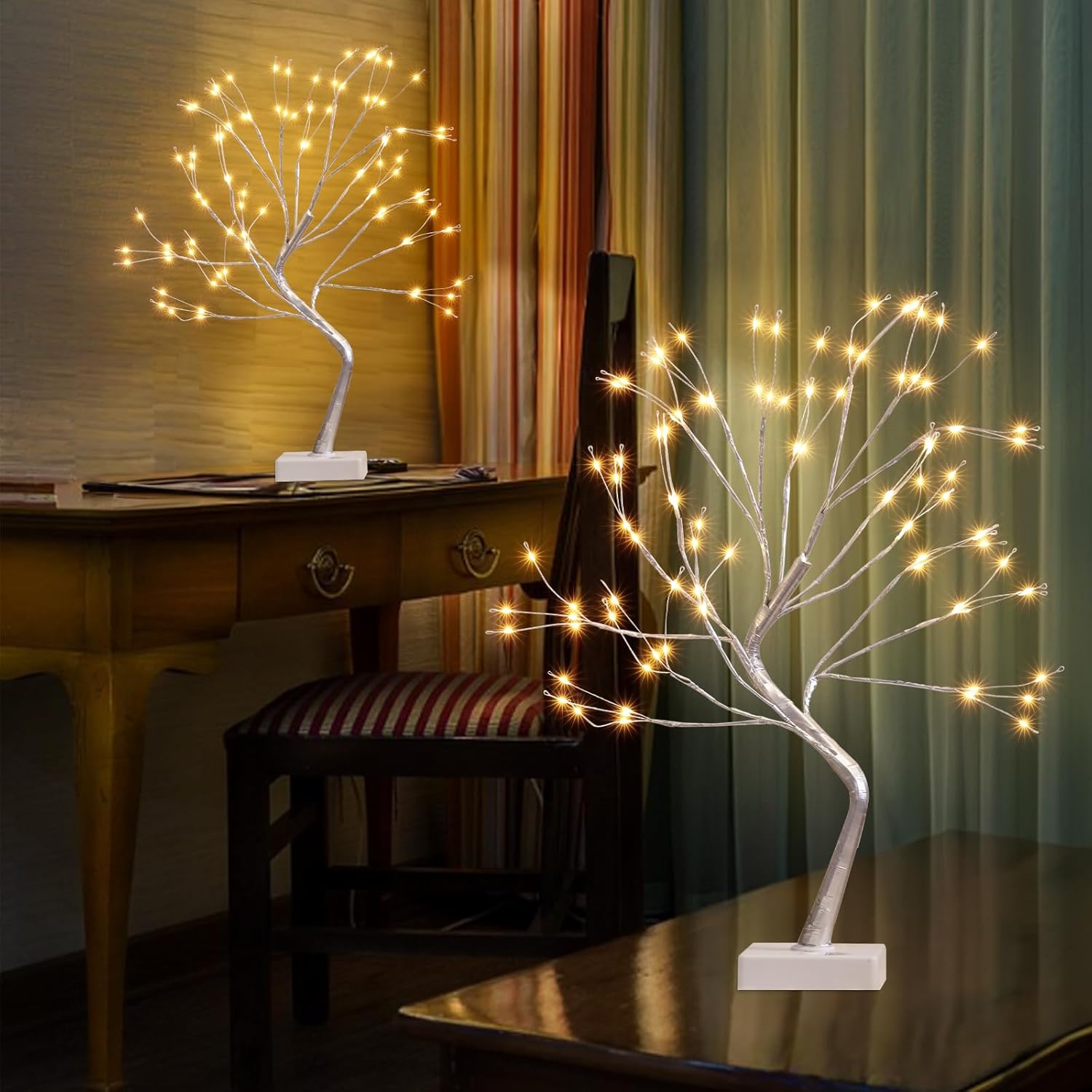 EAMBRITE Fairy Light Tree, 108 Led Light up Trees Decor Indoor, 8 Modes Fairy Light Spirit Tree for Christmas Decorations, USB& Battery Tabletop Bonsai Tree for Home Bedroom Decorations (2 PK, Sliver)
