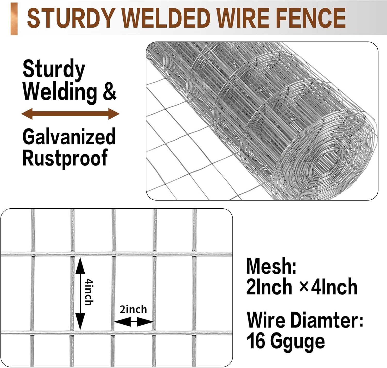 - Sturdy Welded Wire Fence: This welded wire fence manufactured using advanced welding technology to ensure that each solder joint is strong and durable,features a 16GA wire diameter, with 2 inch x 4 inch mesh openings, sturdy enough to effectively protect your yard and poultry safety.