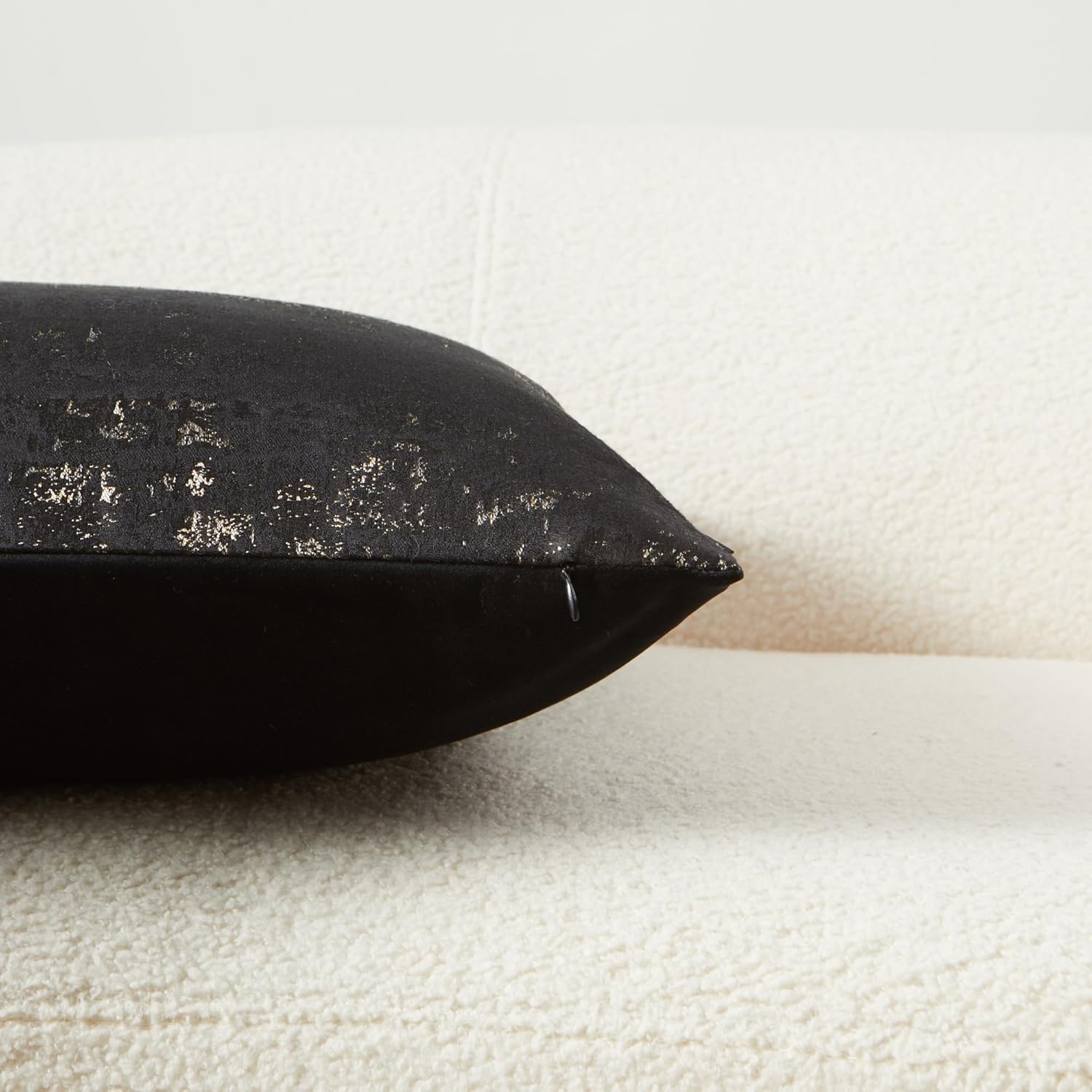 THE-TINOART Black & Gold Modern Luxury Pillow Cover 20x20 - Jacquard Embroidery with Metallic Thread, Reversible Decorative Throw Pillow Cover for Sofa/Bed, Velvet Backing