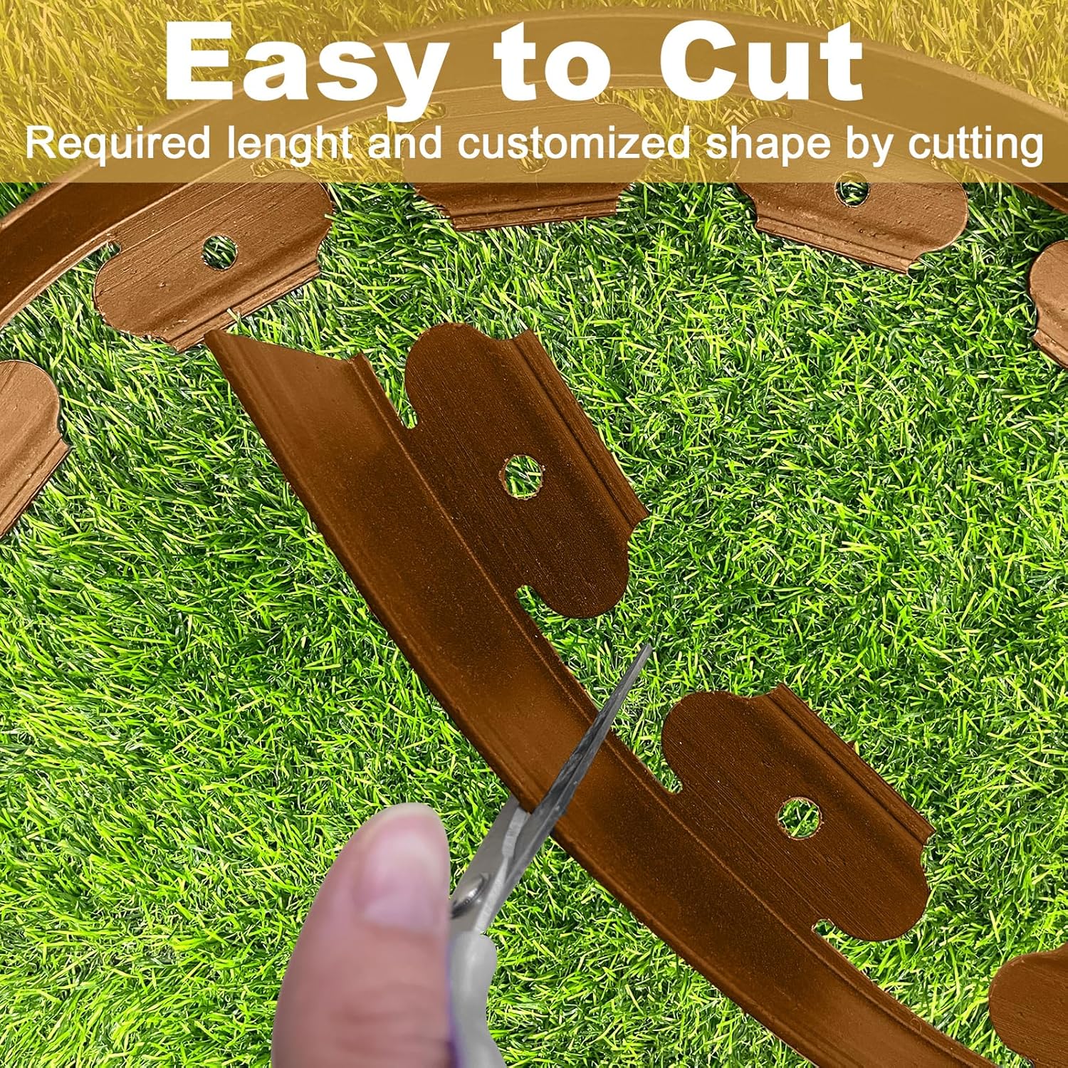 - 【Trim your length】 - Our lawn edging determines that you can cut out any length and shape you want with the scissors in the kit and secure paver edging to the edge of the landscape, creating a strong barrier to protect your plants from other invasive species. Outdoor edge can also be trimmed to length as needed. Driving a stake every 2-3 holes makes it effortless to achieve the design you want around the landscaped courtyard.