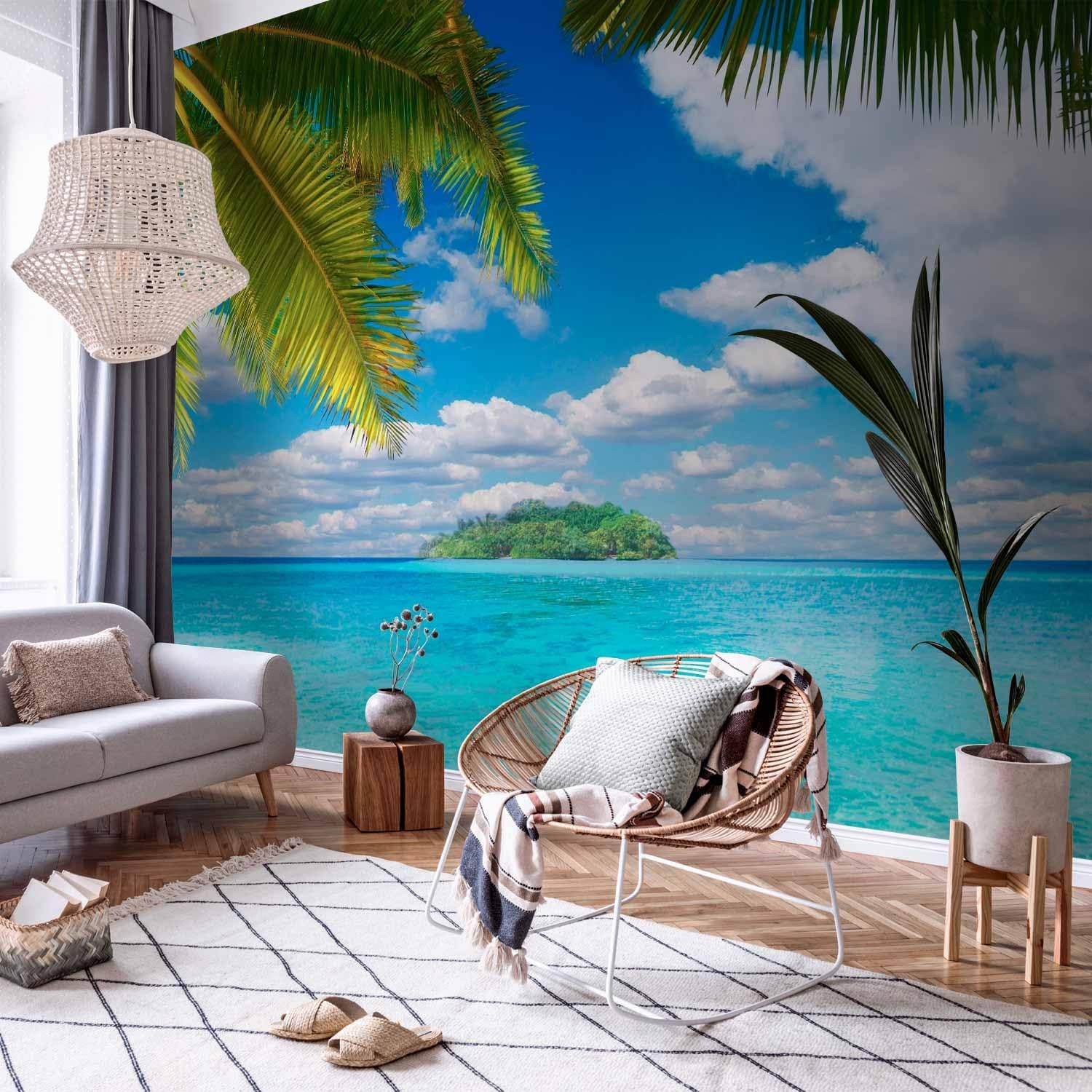 artgeist Premium Wall Mural Nature 216x98 in - Non-Woven Photo Wallpaper Art Print Fleece Wall Mural Decoration Holiday Lagoon Palms n-A-10068-a-a