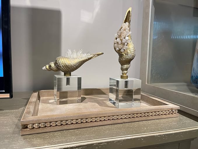 - [Beautiful & Practical] : The edge of the decorative serving tray is designed with beaded style, and they are in Vitage Brown Washed color, making them natural and simple,it an interesting centerpiece for your coffee table. Carefully designed for form and function, the curved edges on these wooden tray help to avoid sliding food or spilling liquids.