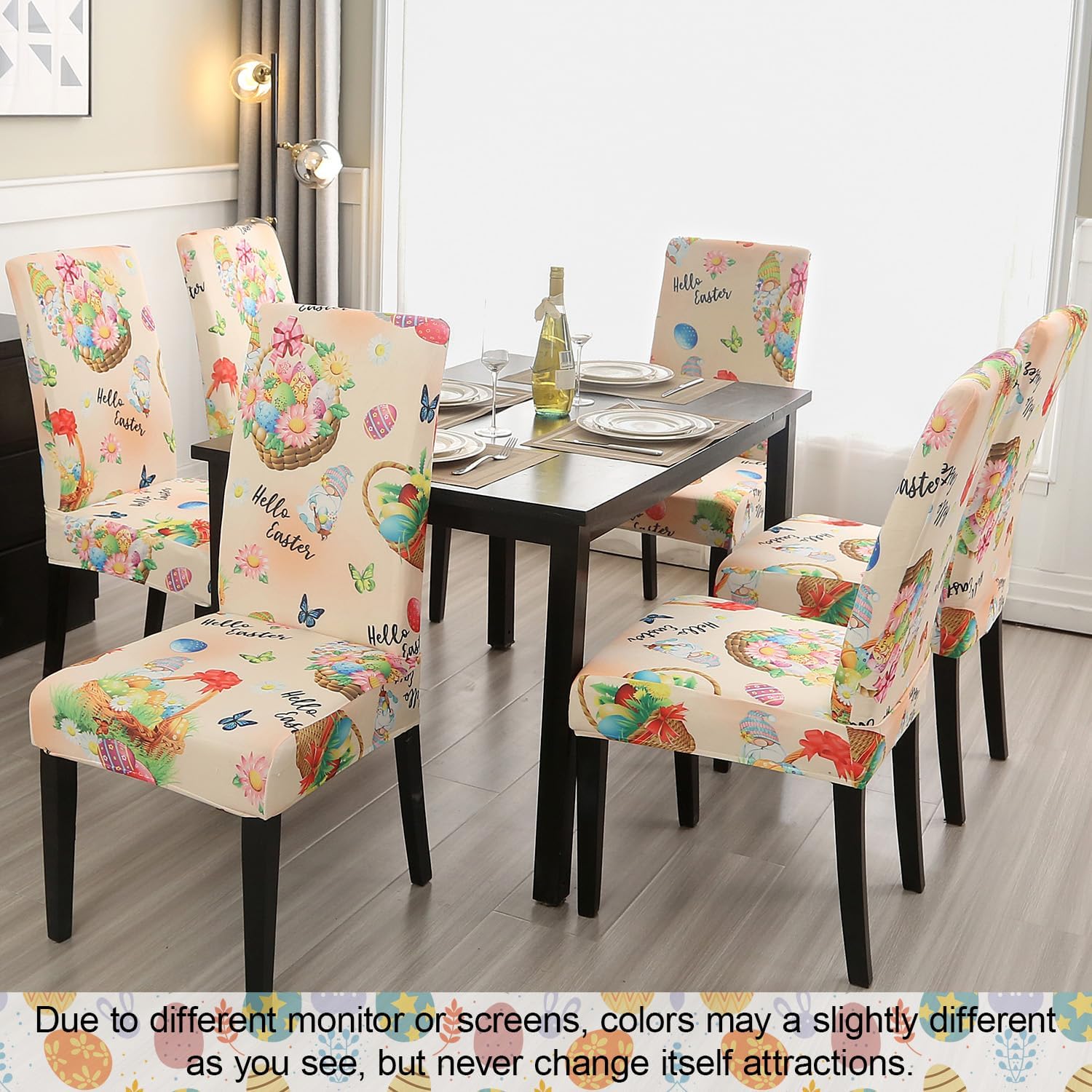 JQinHome Easter Chair Covers Set of 6,High Stretch Removable Washable Chair Seat Protector Cover for Easter Decoration-Easter Theme Decor with Easter Egg Basket