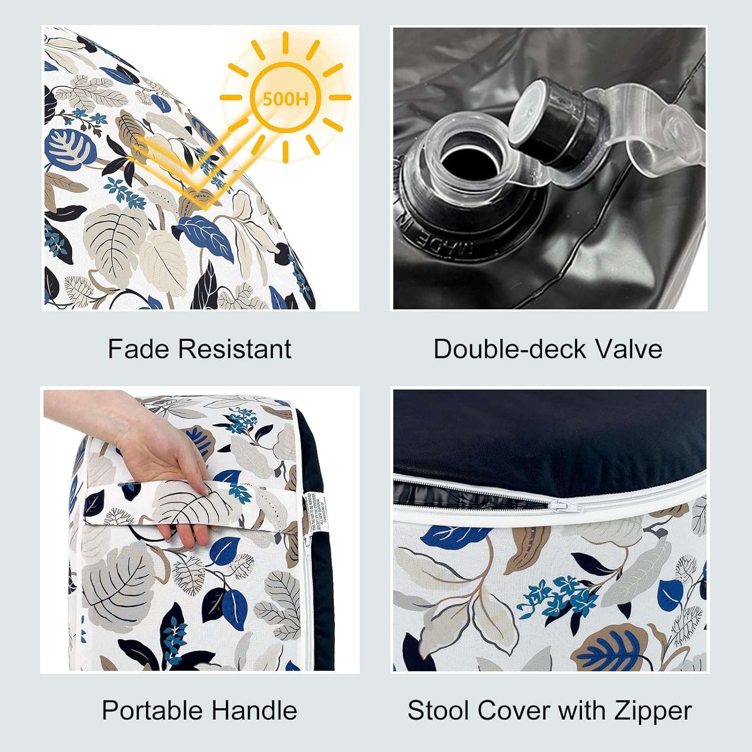 LVTXIII Indoor/Outdoor Inflatable Ottoman, D31 x H14 Inch Large Round Ottoman, All Weather Foot Rest Stool, Portable Footrest for Patio, Garden, Camping and Home - Breeze Leaves Beige