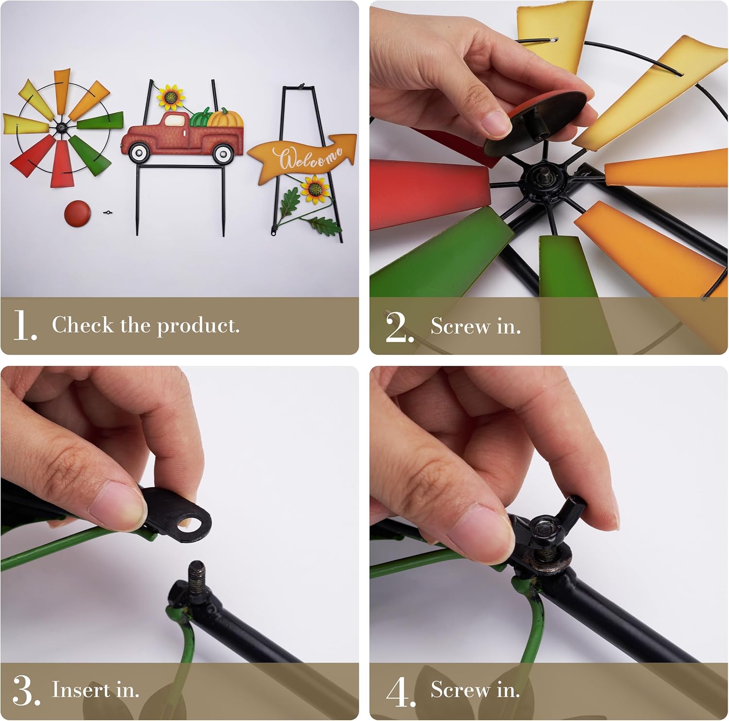 - 【Original Design】This fall garden decor is designed for the Harvest Festival. A truck loaded with plenty of pumpkins joyfully drives into your yard. A sign that says "Welcome" accompanie sunflowers , full of the colors of an autumn harvest festival, leading to a colorful windmill above.