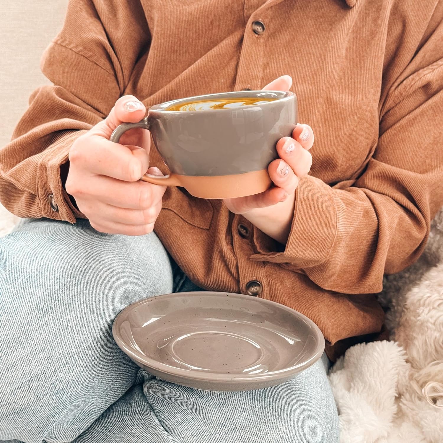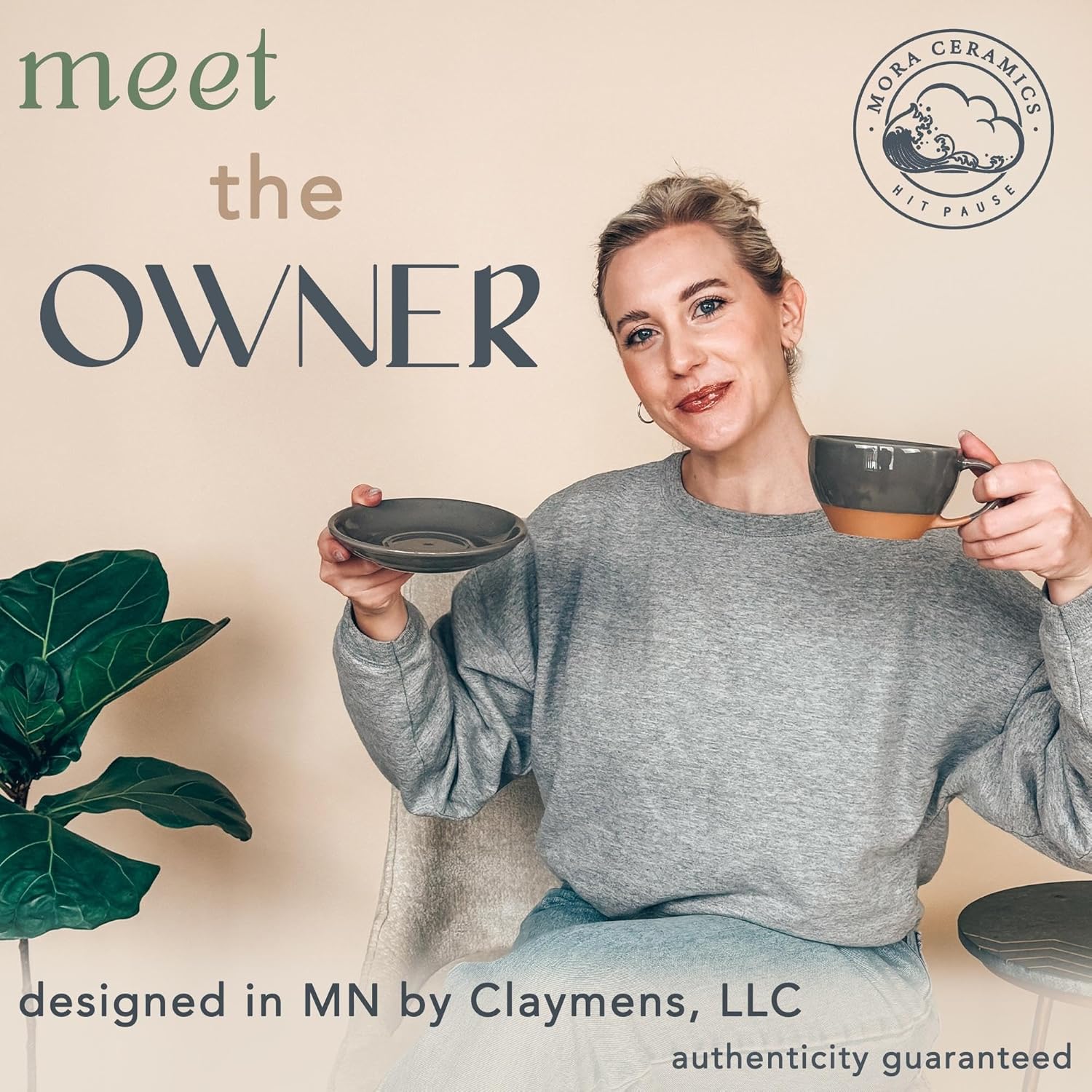 Mora Ceramic Latte Art Mug With Saucer - 10.5 oz, Round Bottom For Perfect Pours - Cafe Cups for Cappuccino, Espresso, Coffee, Tea etc - Porcelain Set for Baristas, Great Gift - Sesame Milk