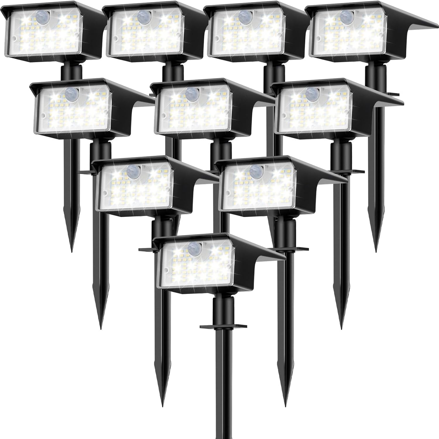 nipify Solar Spot Lights Outdoor Motion Sensor, [10 Pack/62 LED] 3 Modes Solar Spotlights Outdoor Waterproof IP65, 2-in-1 Solar Landscape Lighting Yard Lights for Garden Patio Walkway, Cool White