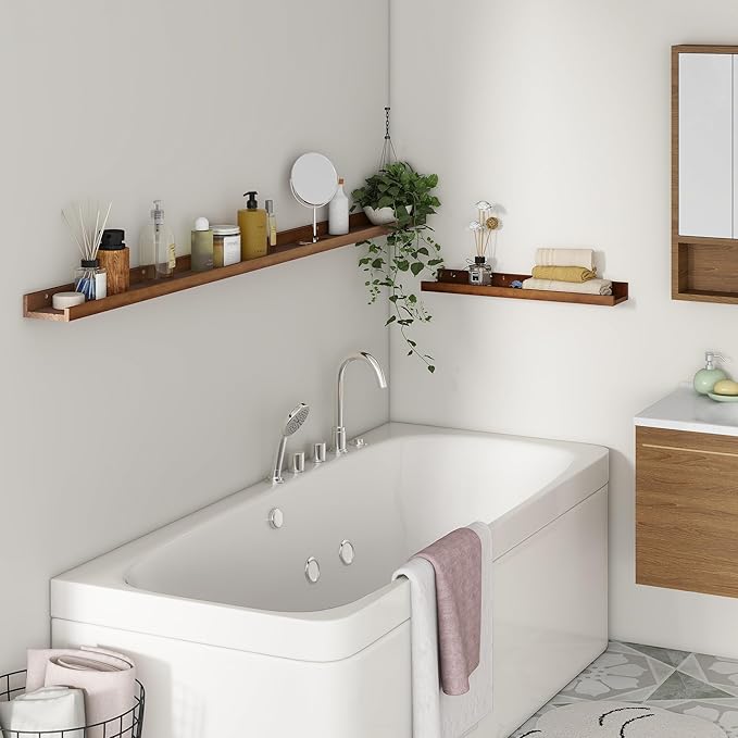 Picture Ledge Shelf, Floating Shelves Set of 2, Solid Pine Wood 72'' Long Large Nursery Book Shelves for Toys Storage, Kids Bookshelf for Living Room Bedroom Decor Books Photo Frames, Walnut