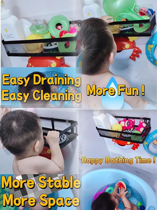 PUSDON Hanging Storage Baskets Organizer Wall Mount, Metal Wire Storage Bin Rack for Kitchen Bathroom Shower Spice Shelf Home Decor Essentials Black-2 Packs (Netting)