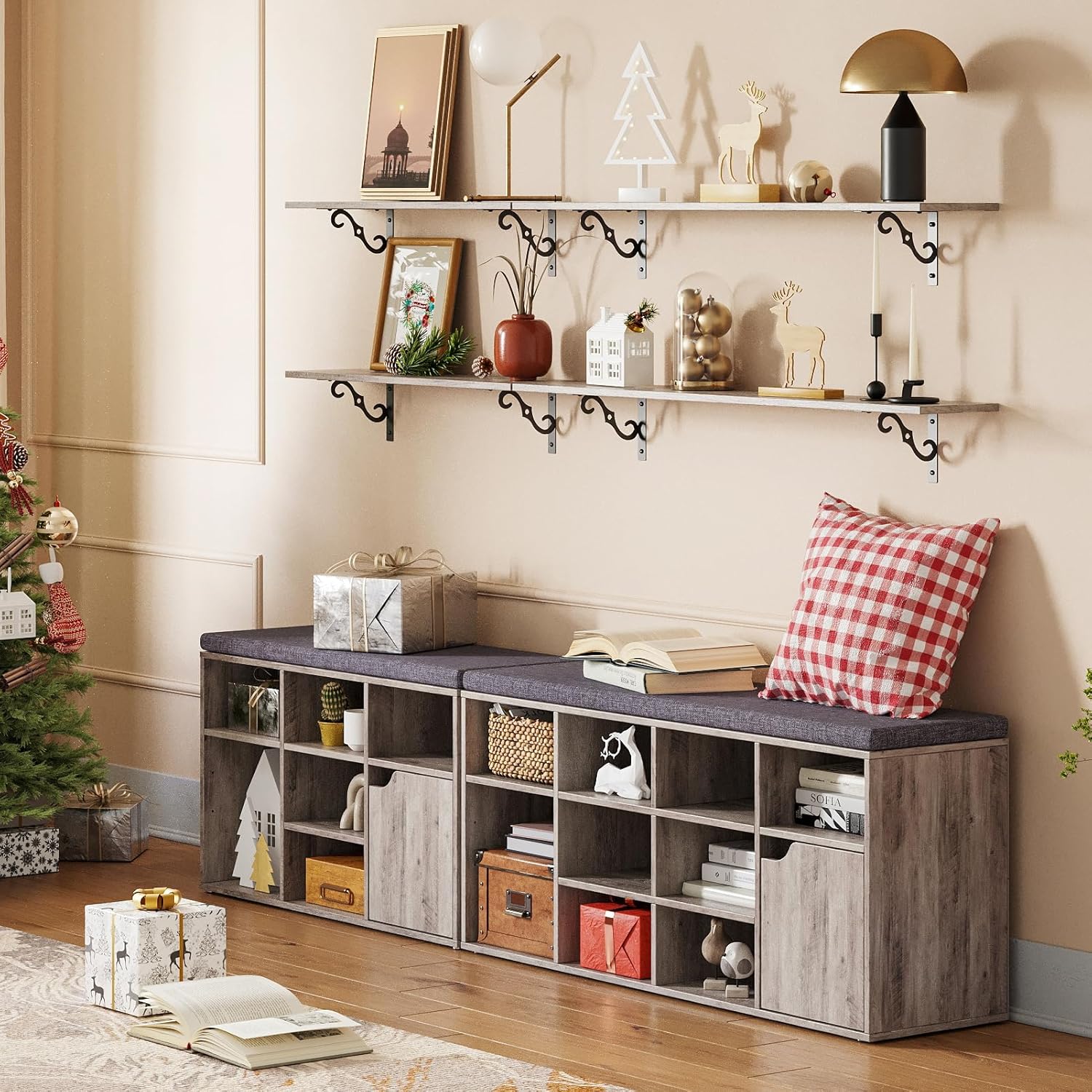 - 【Well Made】Made of premium particleboard and expertly designed metal brackets, sturdy and durable. Thicker brackets bring added stability and stronger load-bearing capacity(up to 33lbs), supporting the wood shelves without sagging over time. All edges are well-finished for smoothness