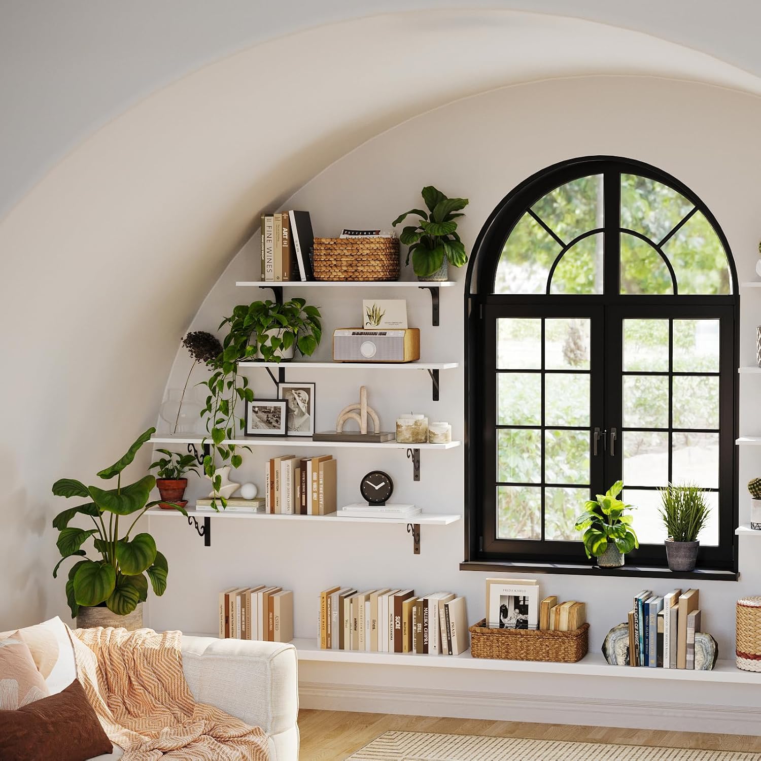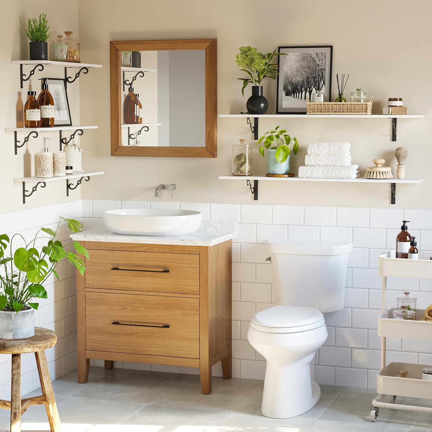 - 【Add Finishing Touch to Space】Mid-century design adds a retro-chic vibe to your home. Rusticity wood grain and exquisite S-shaped iron brackets flaunt visual interest and romance. They are full of character and enhance the texture of the space. A classy way to display your beloved decorations