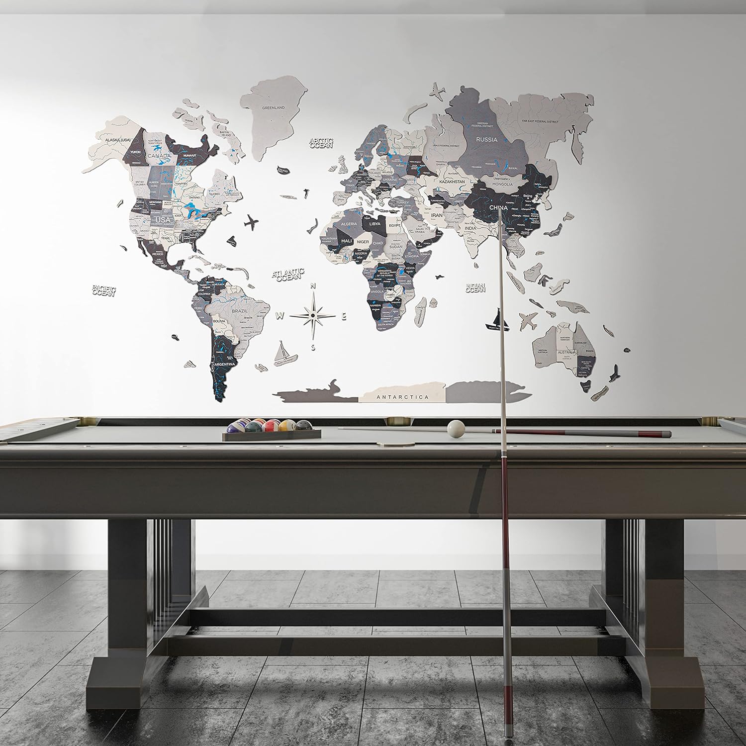 - Premium Quality Construction: This world map wall decor is crafted from superior quality, highly durable birch plywood, available in a selection of 8 colors, 3 sizes and push pins according to your individual needs or preferences.