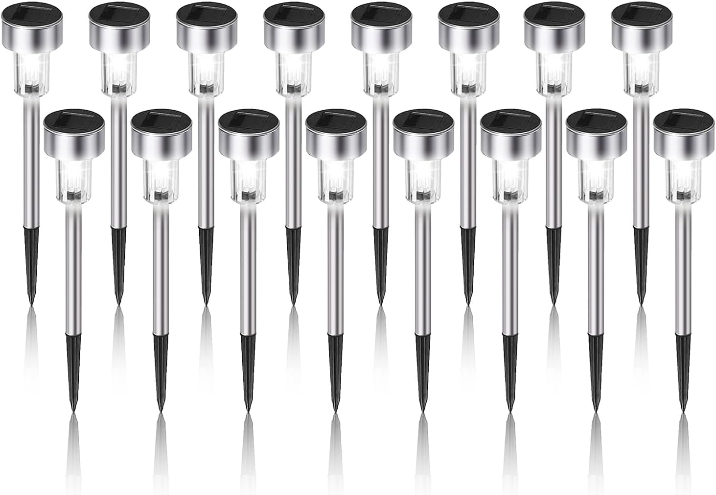 Solar Lights Outdoor Waterproof, Stainless Steel LED Landscape Lighting, Solar Garden Lights Solar Powered, Outdoor Solar Lights for Yard, Pathway, Walkway, Patio , Lawn - 16 Pack ( Cold White )