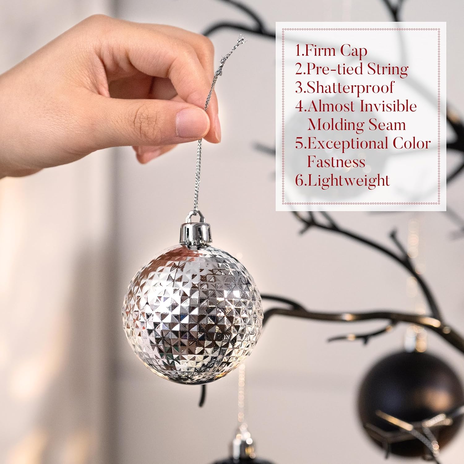 - 【Package and Size】This ornament ball set include 50pcs Christmas ornaments measuring 2.36 inches in diameter, featuring seamless connections for a polished look