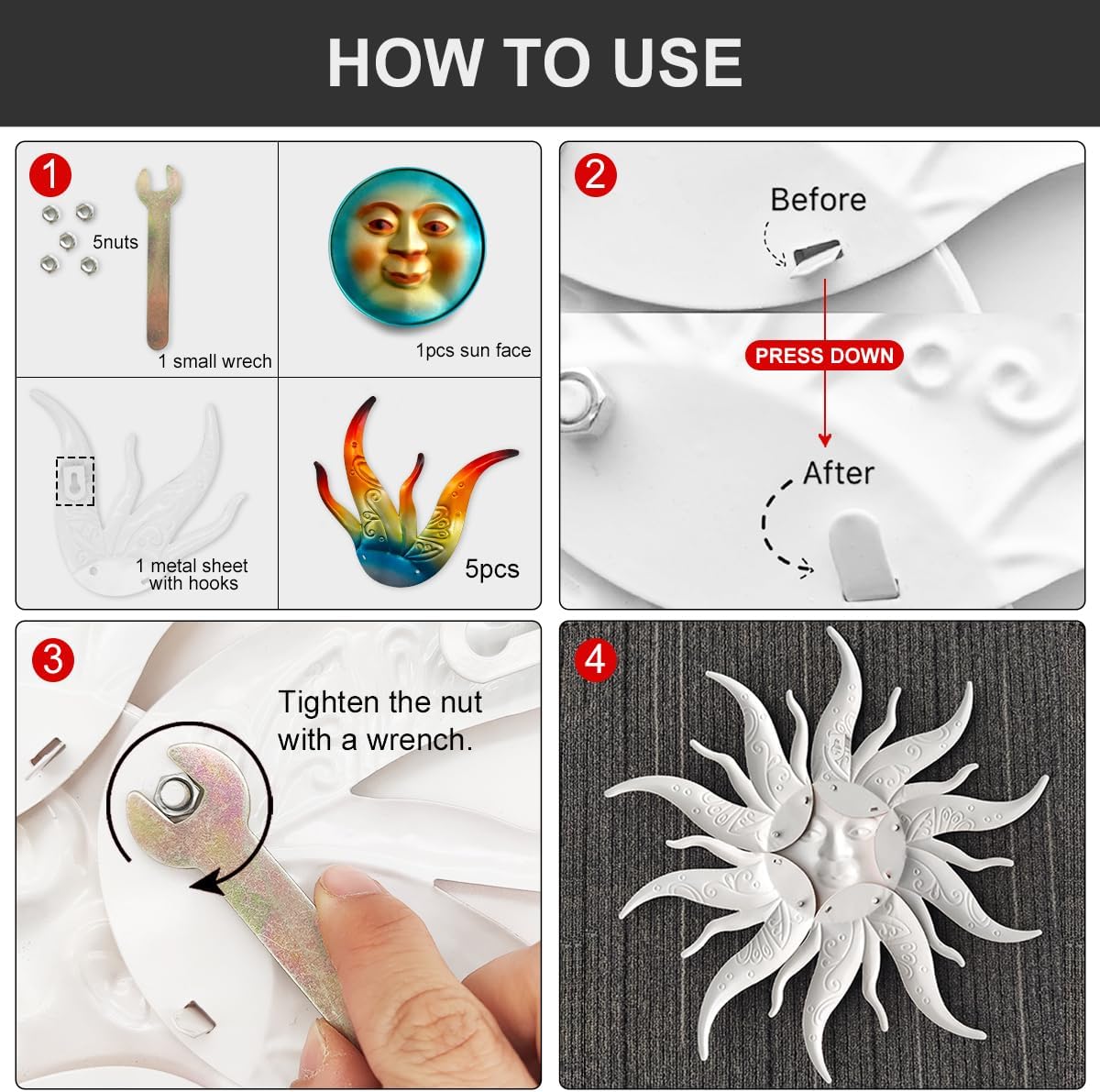 - 【Easy to Install】: The metal sun wall decoration comes with a sturdy metal hook, making it easy to install on the wall or ceiling. You can easily install it in a few minutes according to the installation instructions we provide.