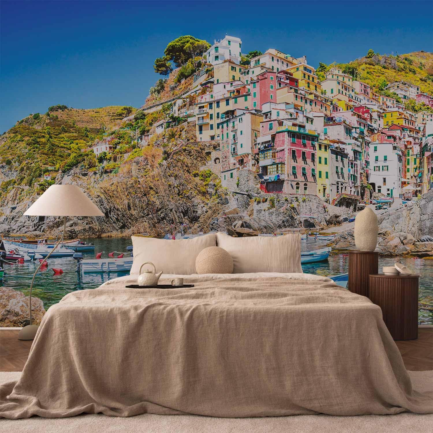 artgeist Premium Wall Mural Architecture 216x98 in - Non-Woven Photo Wallpaper Art Print Fleece Wall Mural Decoration Poster Picture Design City Sea Boat Like Painted d-B-0296-a-a