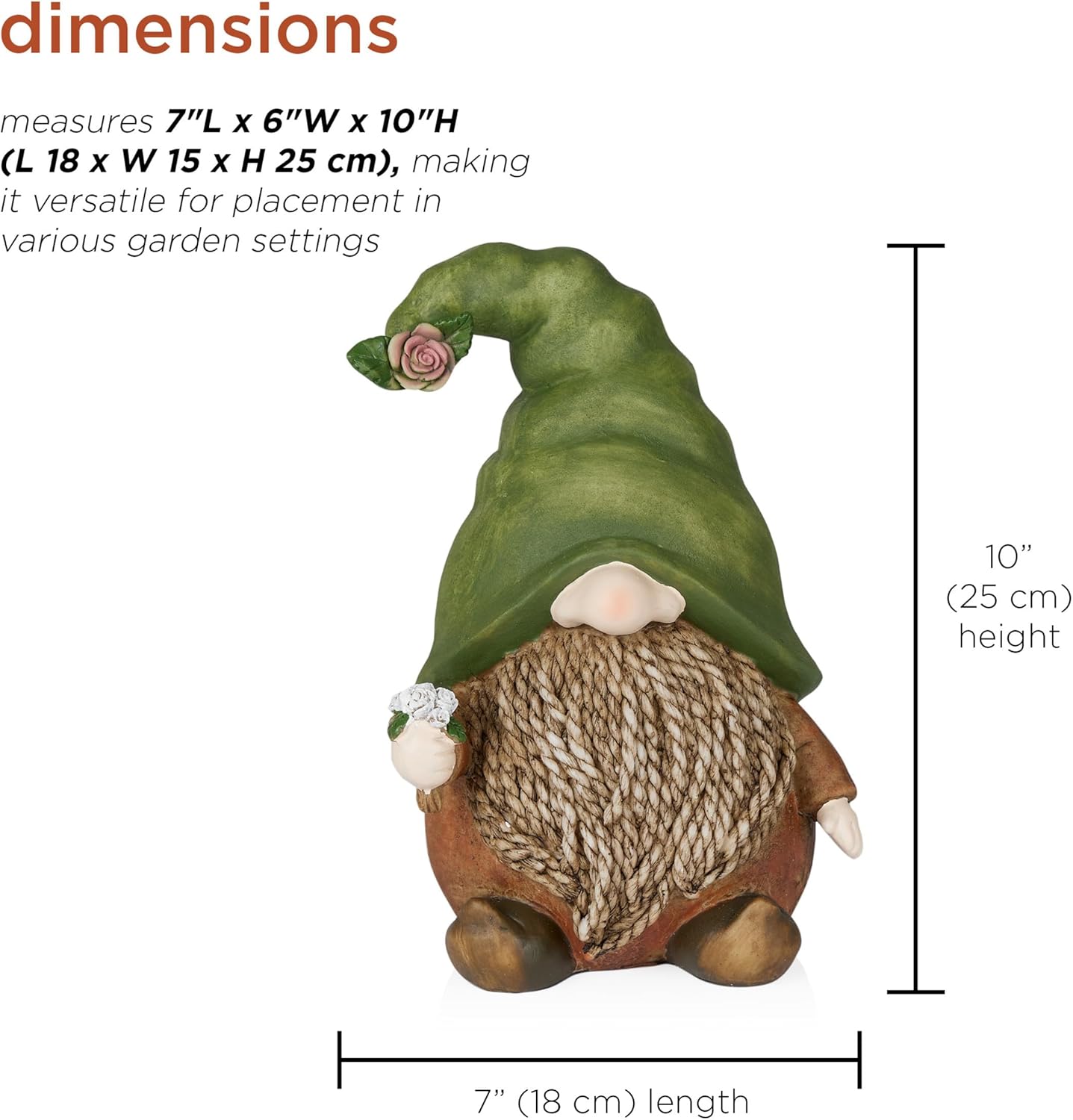 - CUTE GARDEN DECOR: This sweet gnome is topped with a green hat and holds a cute flower, showcasing nature-inspired charm