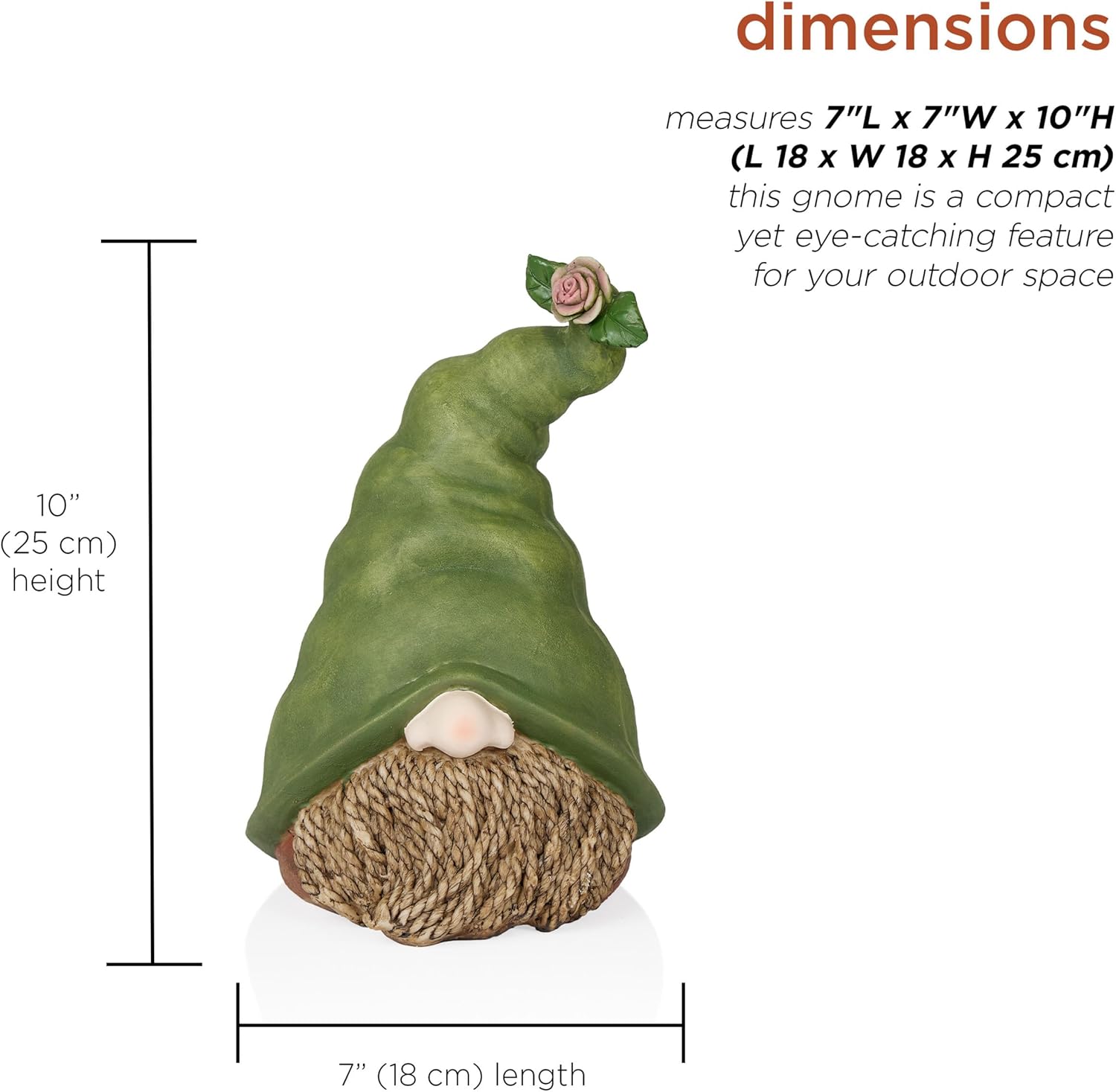 - IDEAL SIZE: With dimensions of 7"L x 7"W x 10"H, this gnome head makes a delightful focal point in your garden or patio without taking up too much space. Its playful design adds personality to small or large outdoor areas.