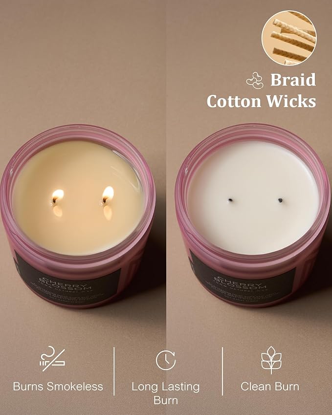 - ๐ณ Clean Consistent & Even Burn - Using 2 American made lead-free cotton wicks for a even burn result. They're cotton flat braid wicks with paper throughout, providing increased rigidity and burn more consistently than 100% cotton wicks. Designed to reduce carbon buildup which leads to black soot.