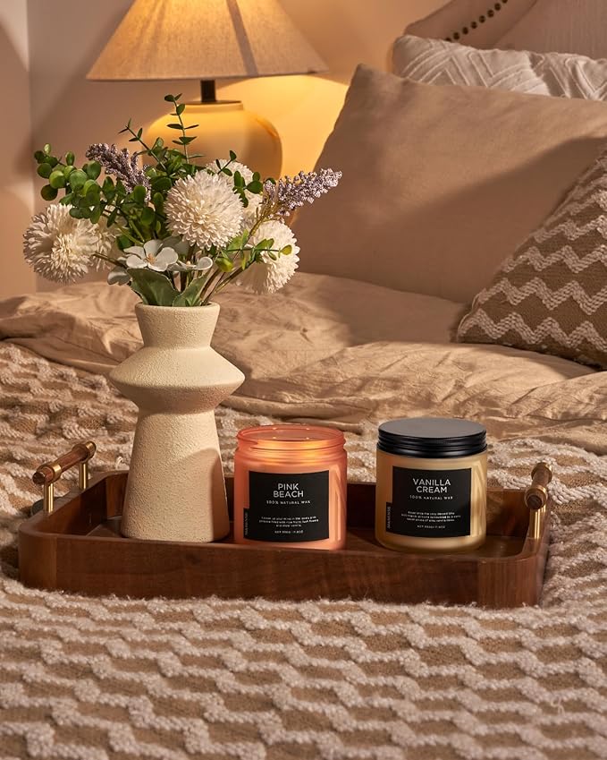 - โณ Room Filling & Long Lasting - These Scented candles are designed to burn for 60-70 hours when properly cared for. The net weight of wax is 11.6oz/330g. Recommended to use in rooms smaller than 20 square meters. Our high-quality formulas have been tested to perform for an extended period of time.