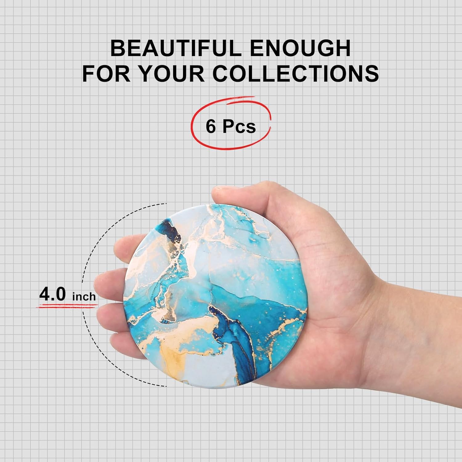 - Wide Application: Natural blue marble pattern design, goes with everthing. Great for home, kitchen, living room, bar, hotel, party and restaurants. You can use the drink coasters on your dining table, coffee table or even for at the office.It will become a great decoration of your daily life.