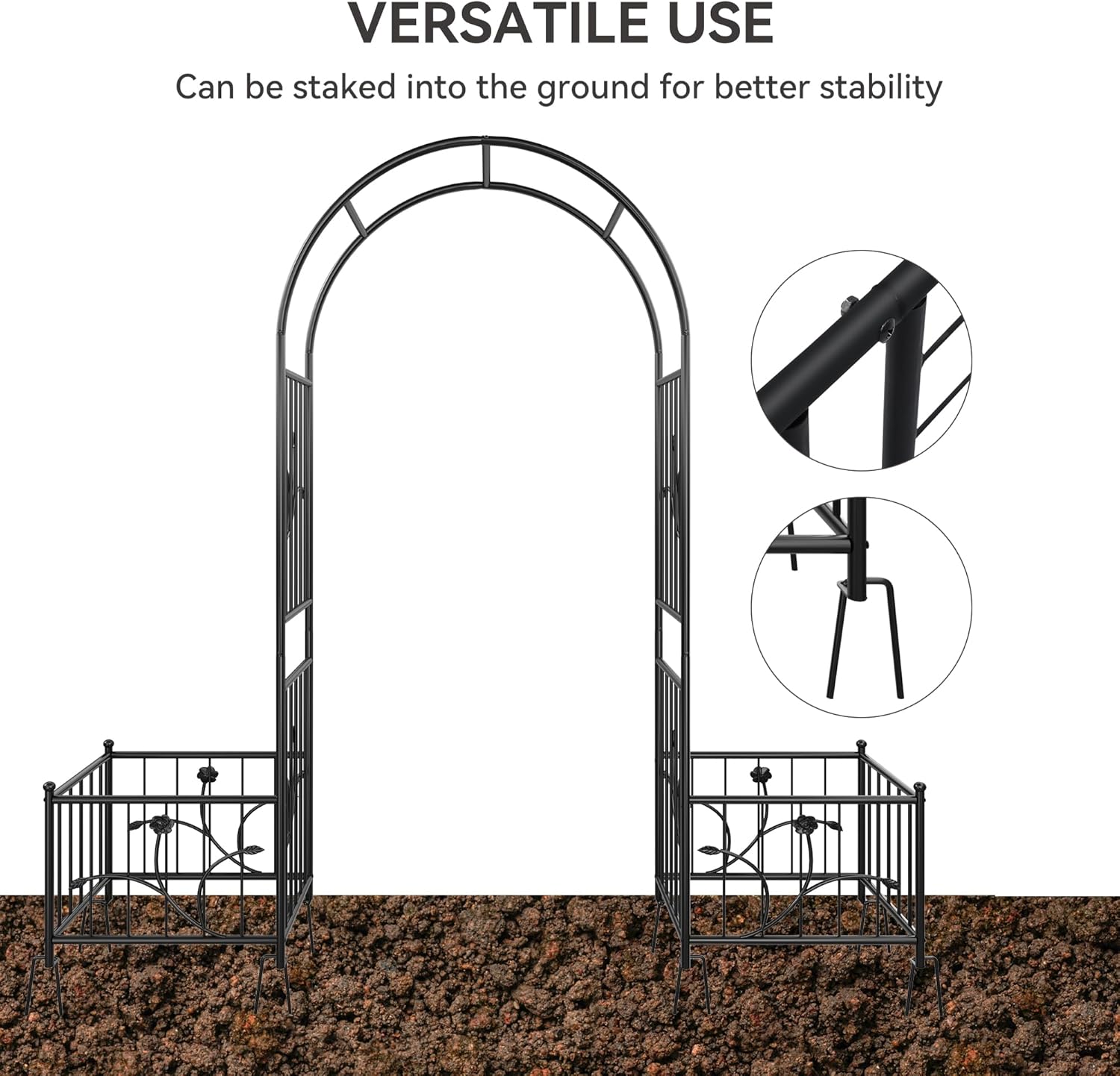 YITAHOME Garden Arbor with Planter Boxes, Wedding Arches for Ceremony, Black Metal Garden Archway for Climbing Plants Outdoor Lawn, Patio and Backyard