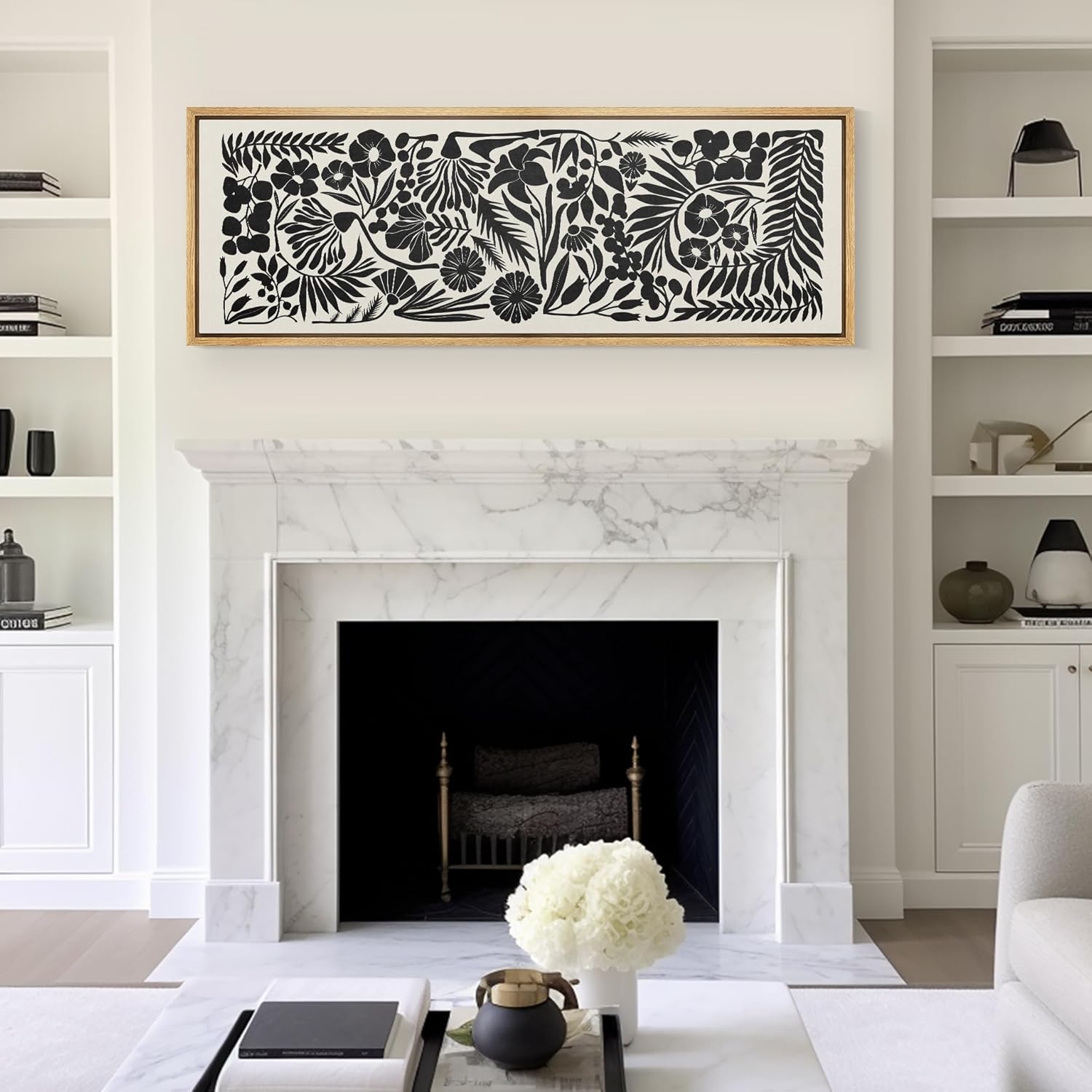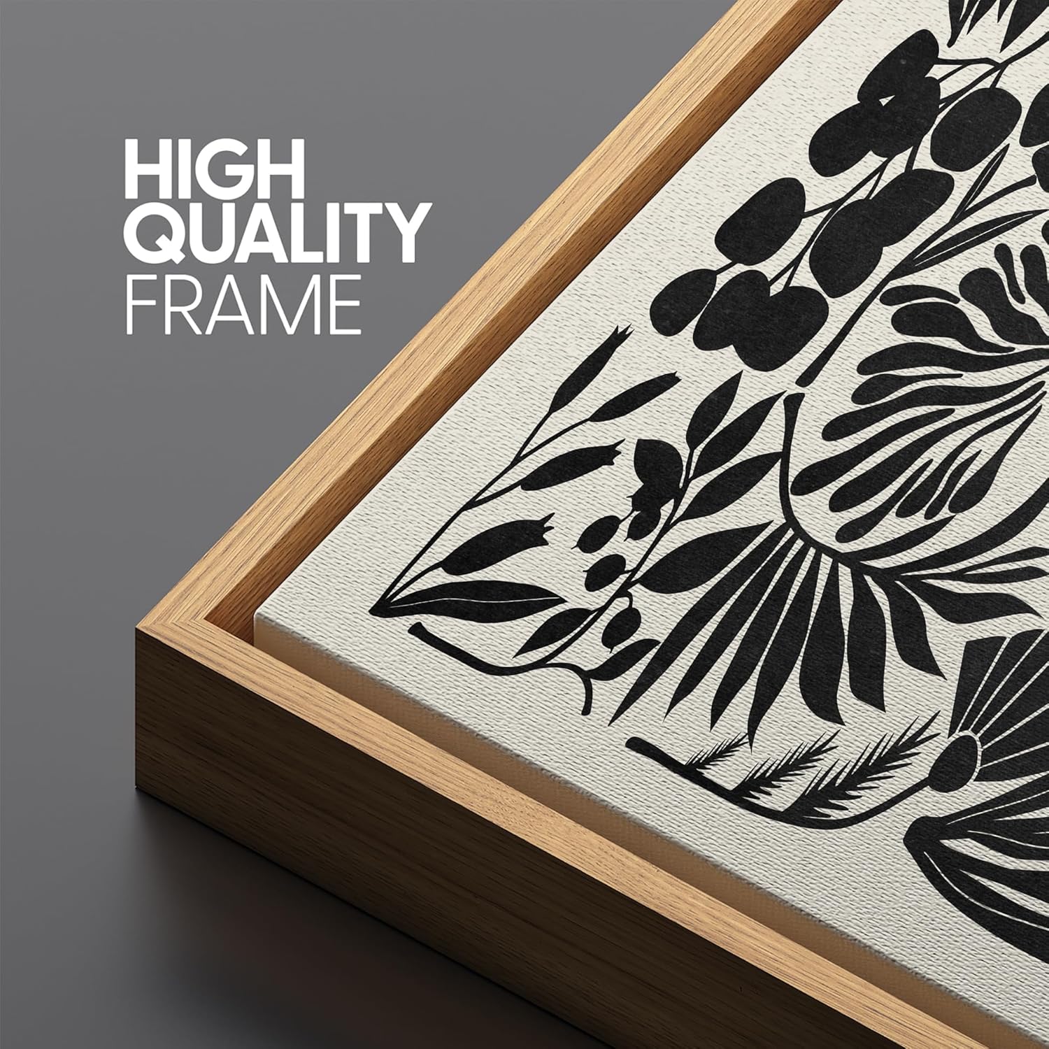 MUDECOR Large Framed Canvas Print Wall Art Monochrome Botanicals Black and White Floral Illustrations Antique Retro Fine Art Illustrations Decorative Colorful for Bedroom - 60"x20"