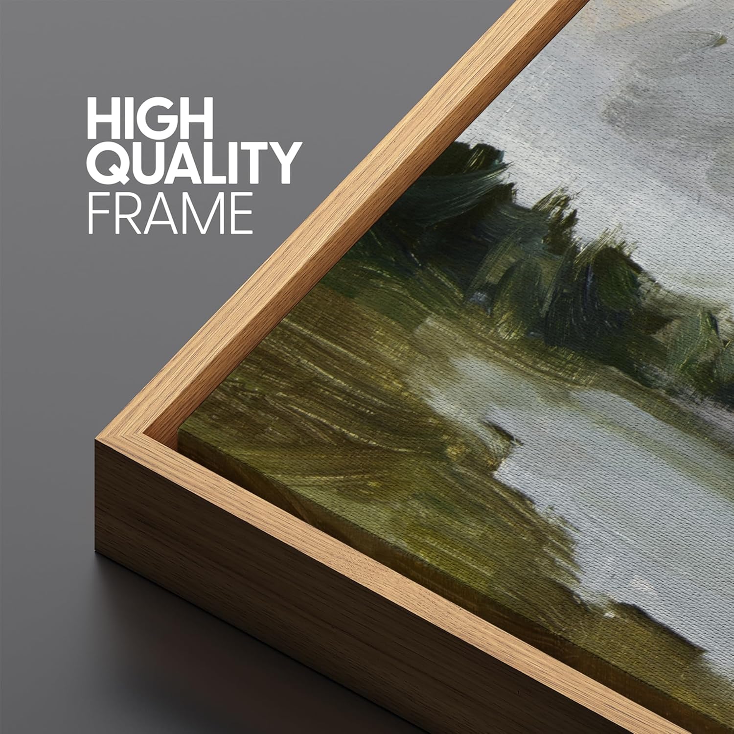 MUDECOR Large Framed Canvas Print Wall Art Tranquil Landscape Soft Brushstroke Lake Scene Illustrations Antique Retro Fine Art Illustrations Decorative Colorful for Bedroom - 60"x20"