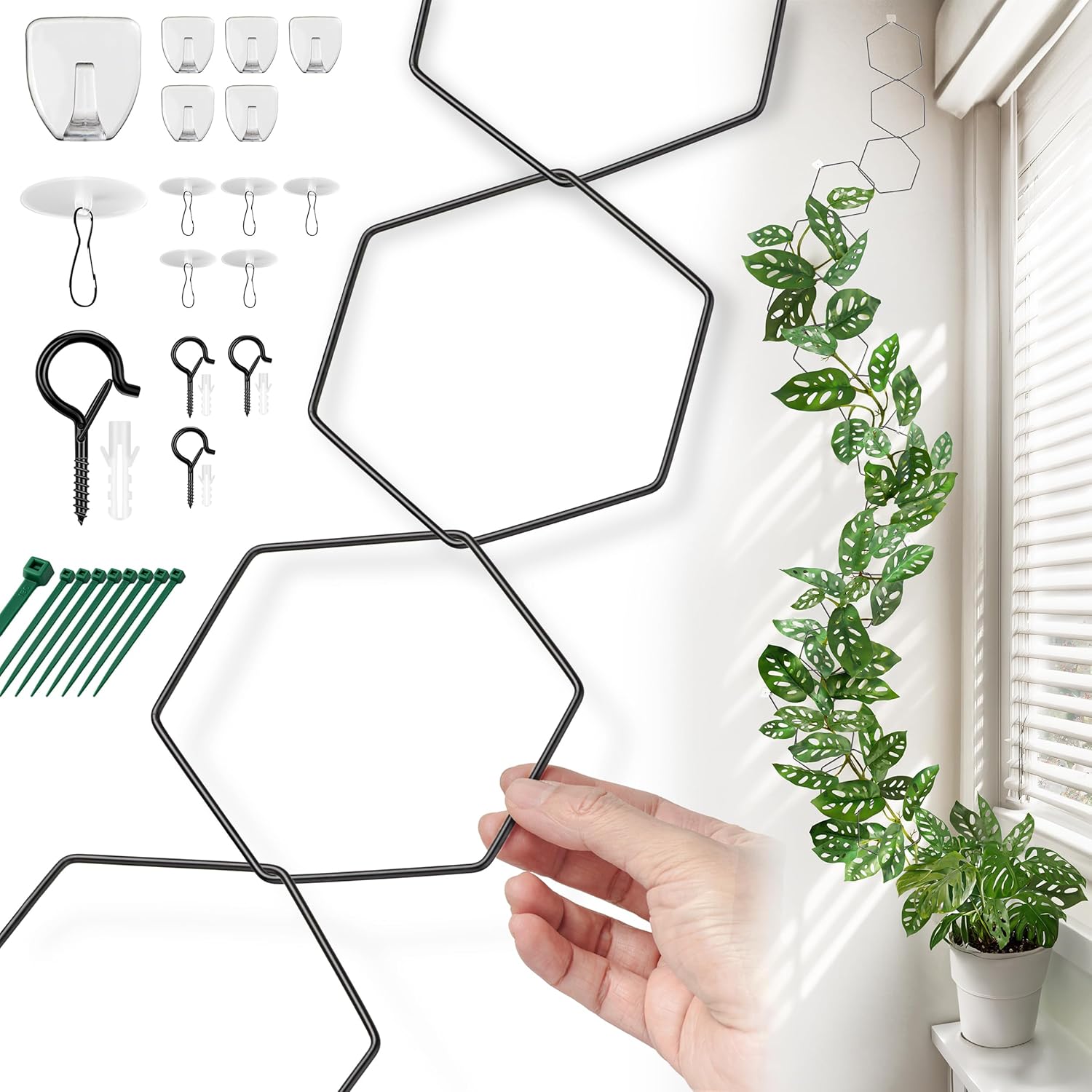 - Versatile Design for Climbing Plants: The trellis features a unique hexagonal ring design that provides ample support for climbing plants such as philodendrons, hoyas, ivy, and vegetables.