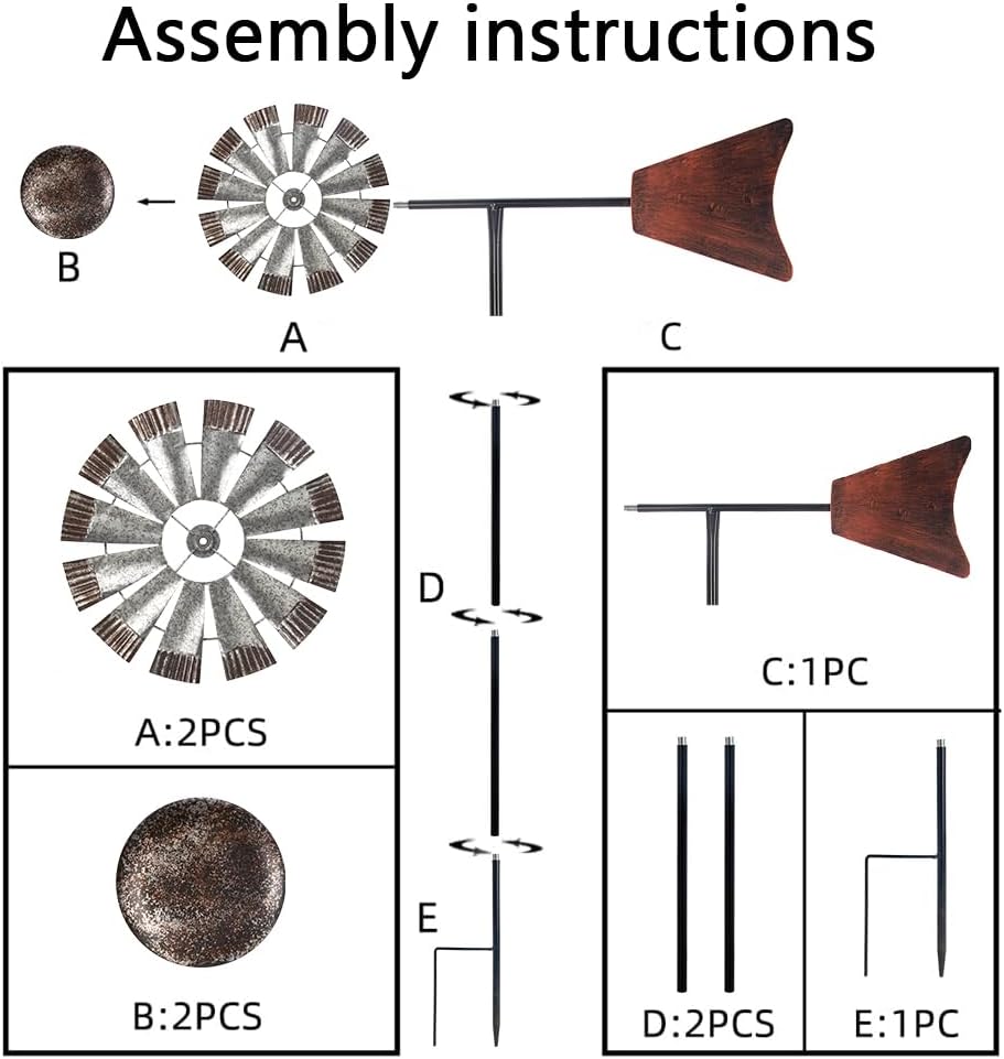 - EASY TO INSTALL:Simply tighten the screw at three places and insert it into the soil. The durable kinetic wind spinner comes with stabilizing metal stakes to ensure it stands firm in windy weather