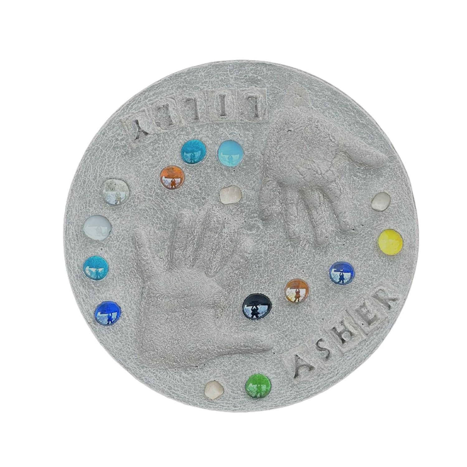 Large DIY Stepping Stone Kit, Handprint Stepping Stone, Mother's Day Gift, Footprint Stepping Stone (12 Inch + Stamp Set)