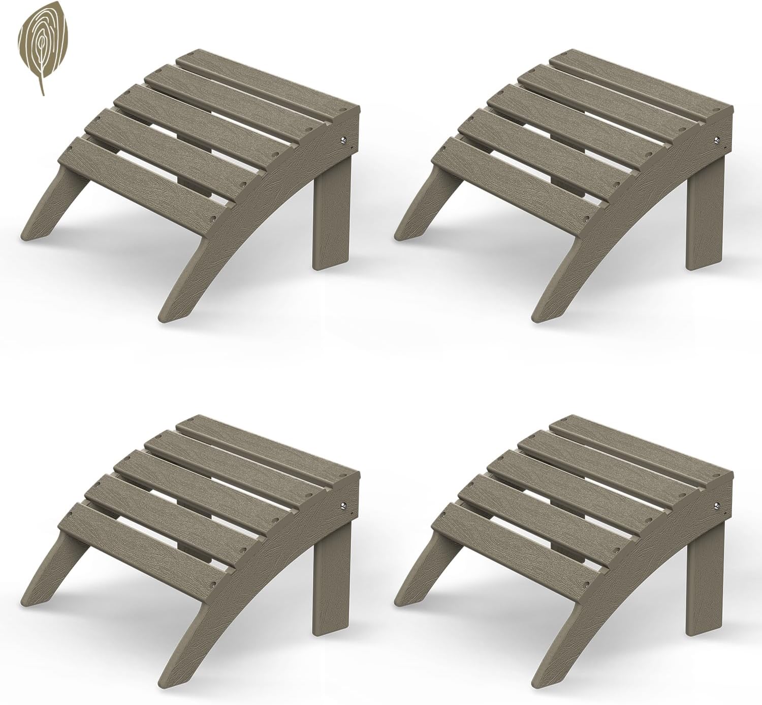 GREENVINES Adirondack-Ottoman | Wood Grain | Set of 4 | HDPE Plastic | Outdoor Footrest | All Weather | Foot Rest | Foot Stool | Desert Brown | for Adirondack Chair