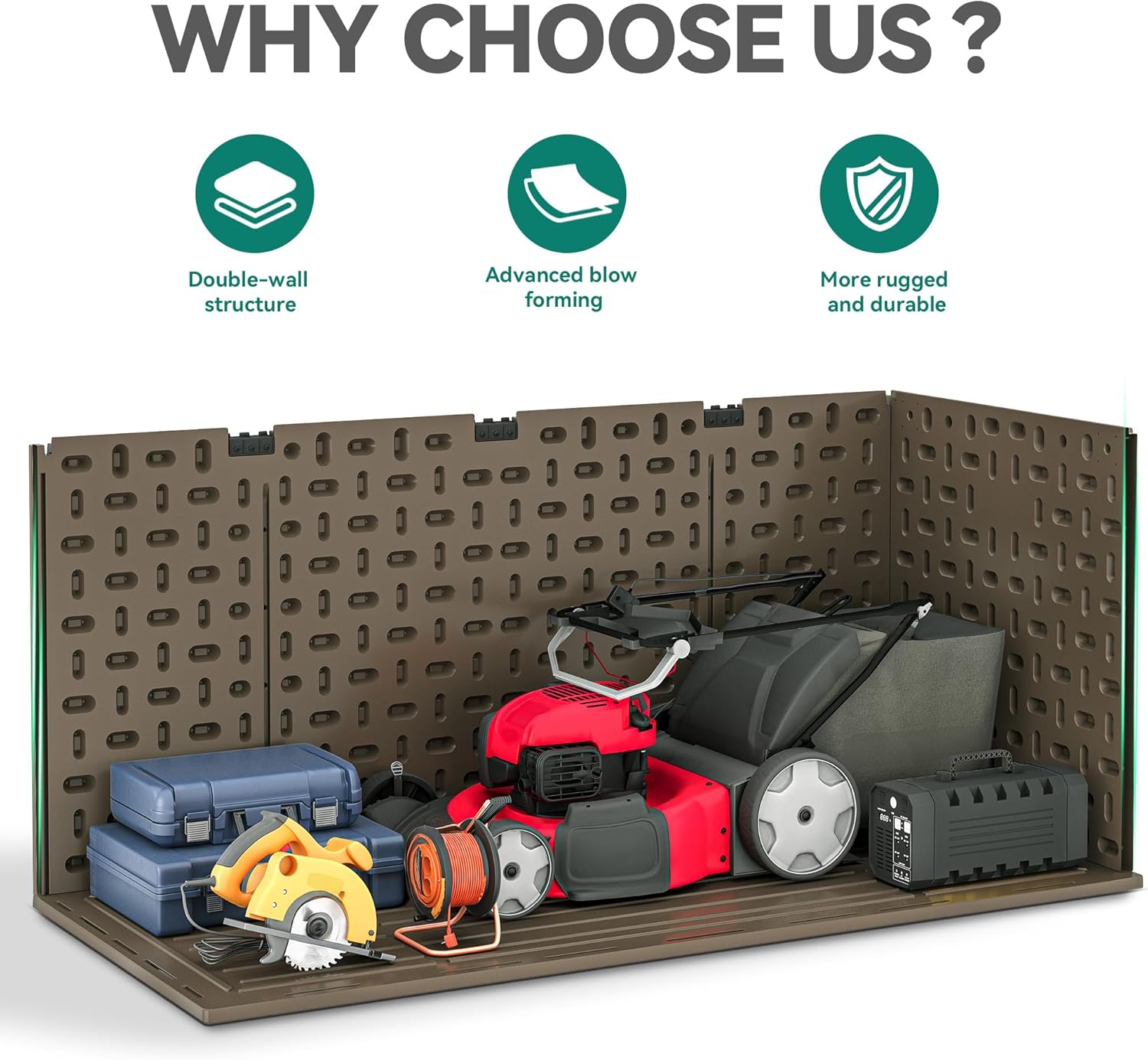 - Double-Layer Structure: Our all-weather resin deck box stands out with a double-layer structure and enhanced with internal reinforced steel beams, providing durability and resilience for outdoor use