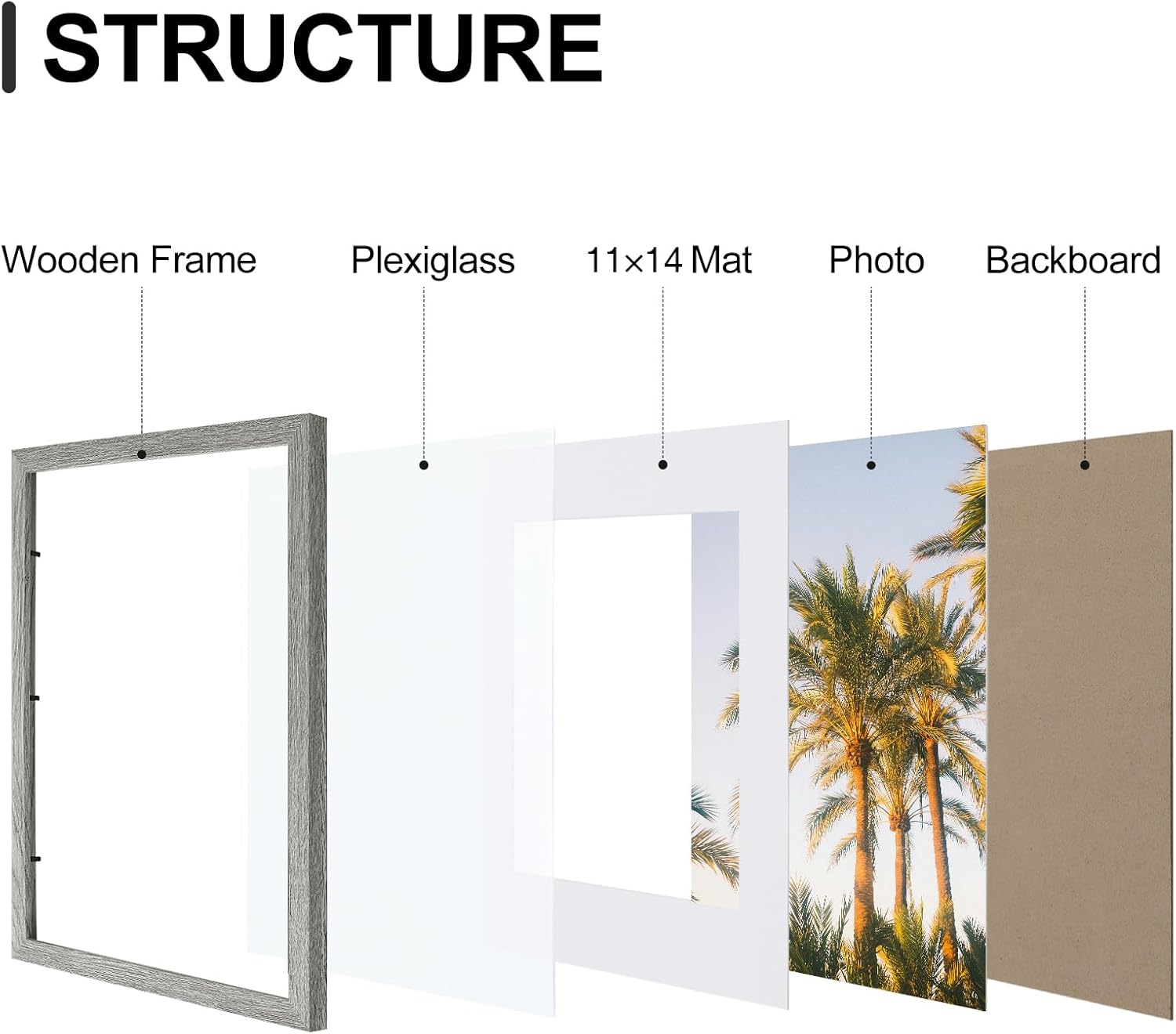 - Premium Materials: Made of sturdy composite wood material, our frames are lightweight and built to last. With a high-definition plexiglass front that resists breaking, simply remove the protective film before use to reveal crystal-clear clarity
