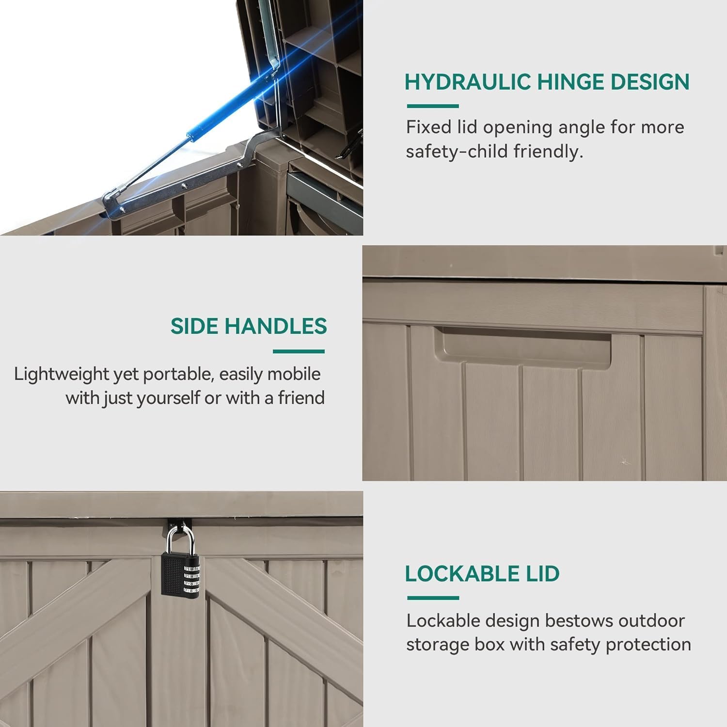 - EASY TO USE- Hydraulic hinge provides smooth, anti-slam closing; It’s easy to reposition thanks to the built-in handles, and secure your items with lockable lid; Two people assembly in 10 mins with tools included.