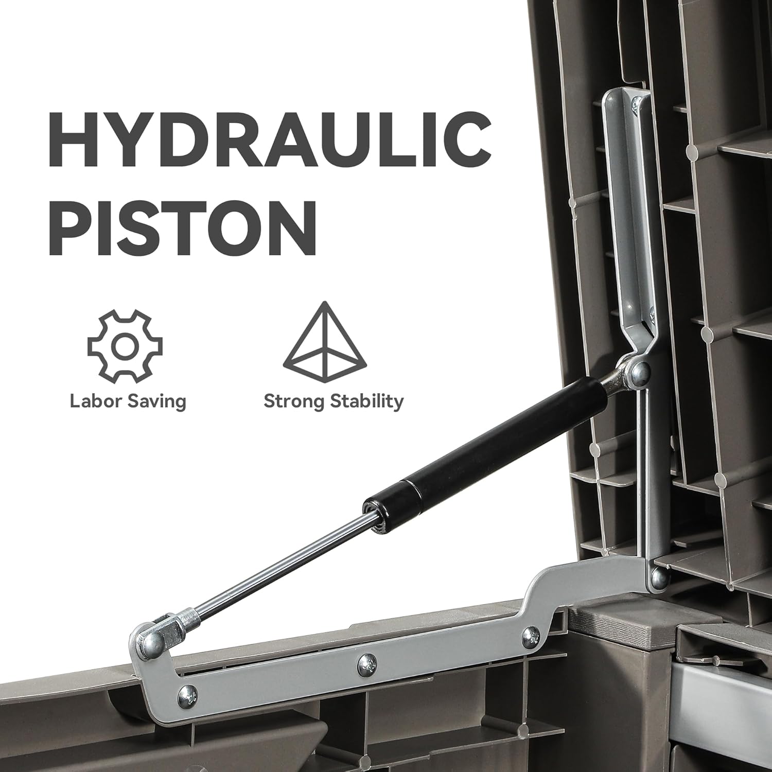 - HYDRAULIC PISTONS: Easy lift and soft close mechanism pulls the top completely open and shut slowly with minimal effort - easy for people to use and no smashed fingers.