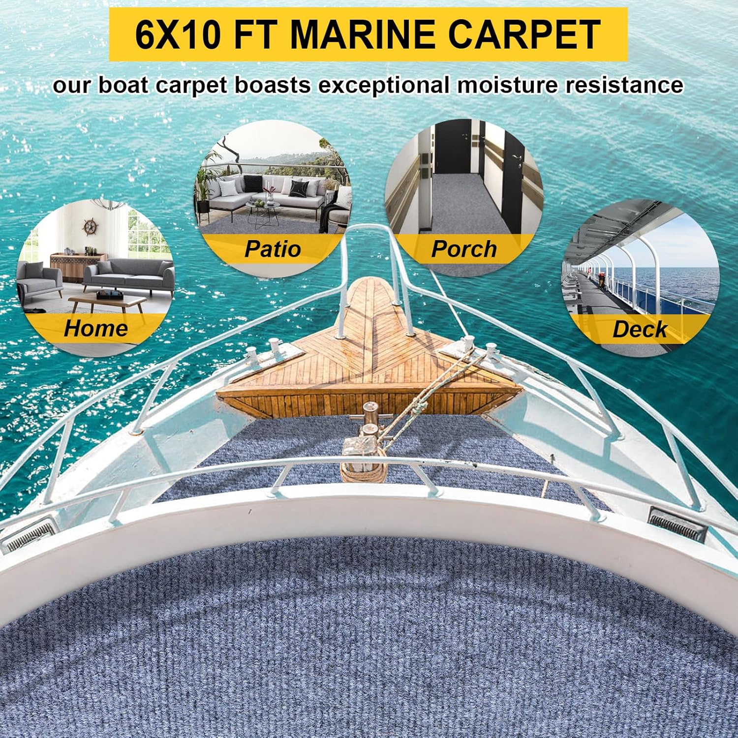 - Premium Indoor Outdoor Carpet: Color: Blue-Gray; Size: 6 x 10 FT (1.8 x 3 m); Thickness: 0.2 in(5.0 mm). Crafted from high-quality polyester fibers, our boat carpet boasts exceptional moisture resistance, durability, shape retention, and colorfastness, ensuring a long-lasting and vibrant addition to your space.
