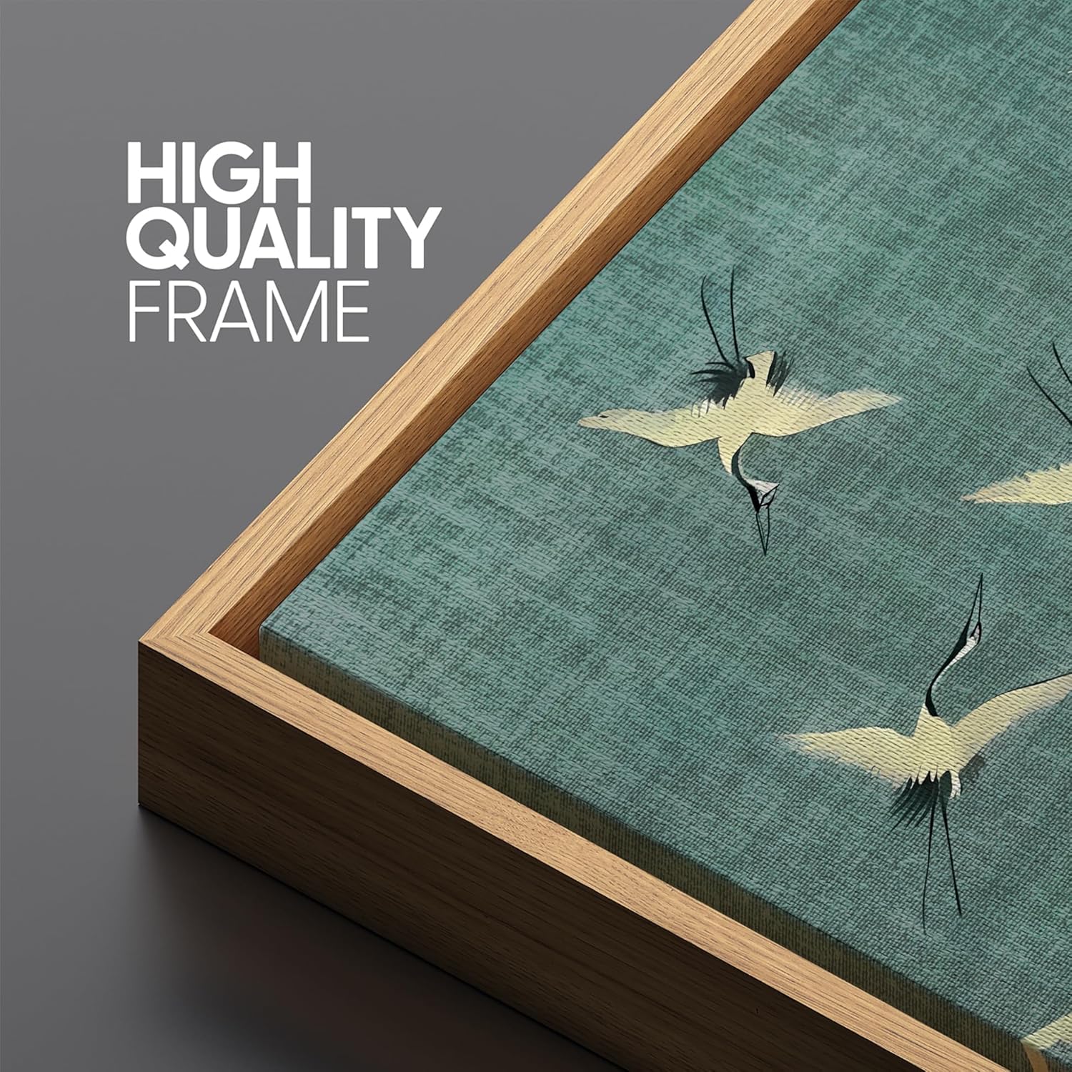 MUDECOR Large Framed Canvas Print Wall Art Serene Skies White Birds in Flight on Teal Antique Retro Fine Art Illustrations Decorative Colorful for Bedroom - 60"x20"