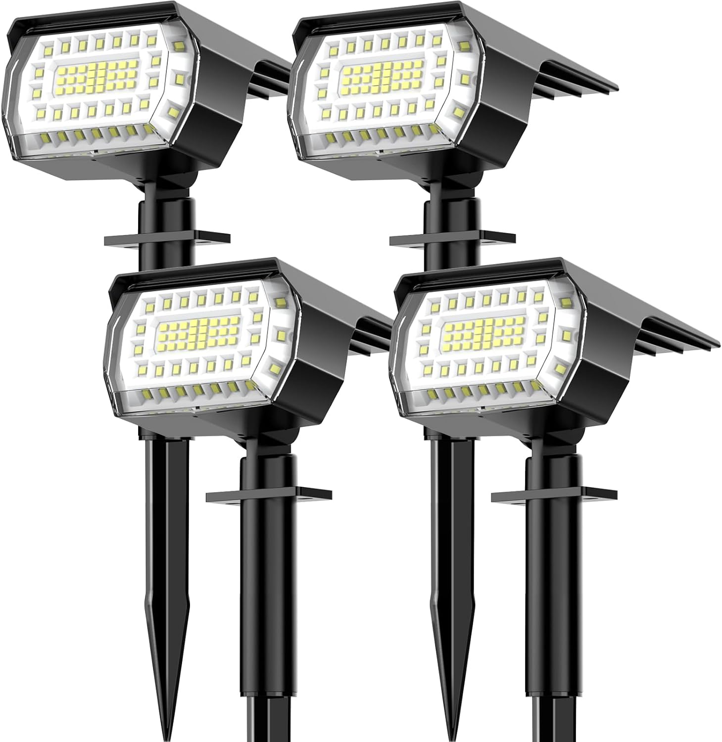 LANSOW Solar Spot Lights Outdoor, [4 Pack/57 LED] 2-in-1 Solar Landscape Spotlights, 3 Modes IP65 Waterproof Dusk to Dawn Solar Powered Flood Wall Lights for Outside Yard Garden Pathway(Cool White)