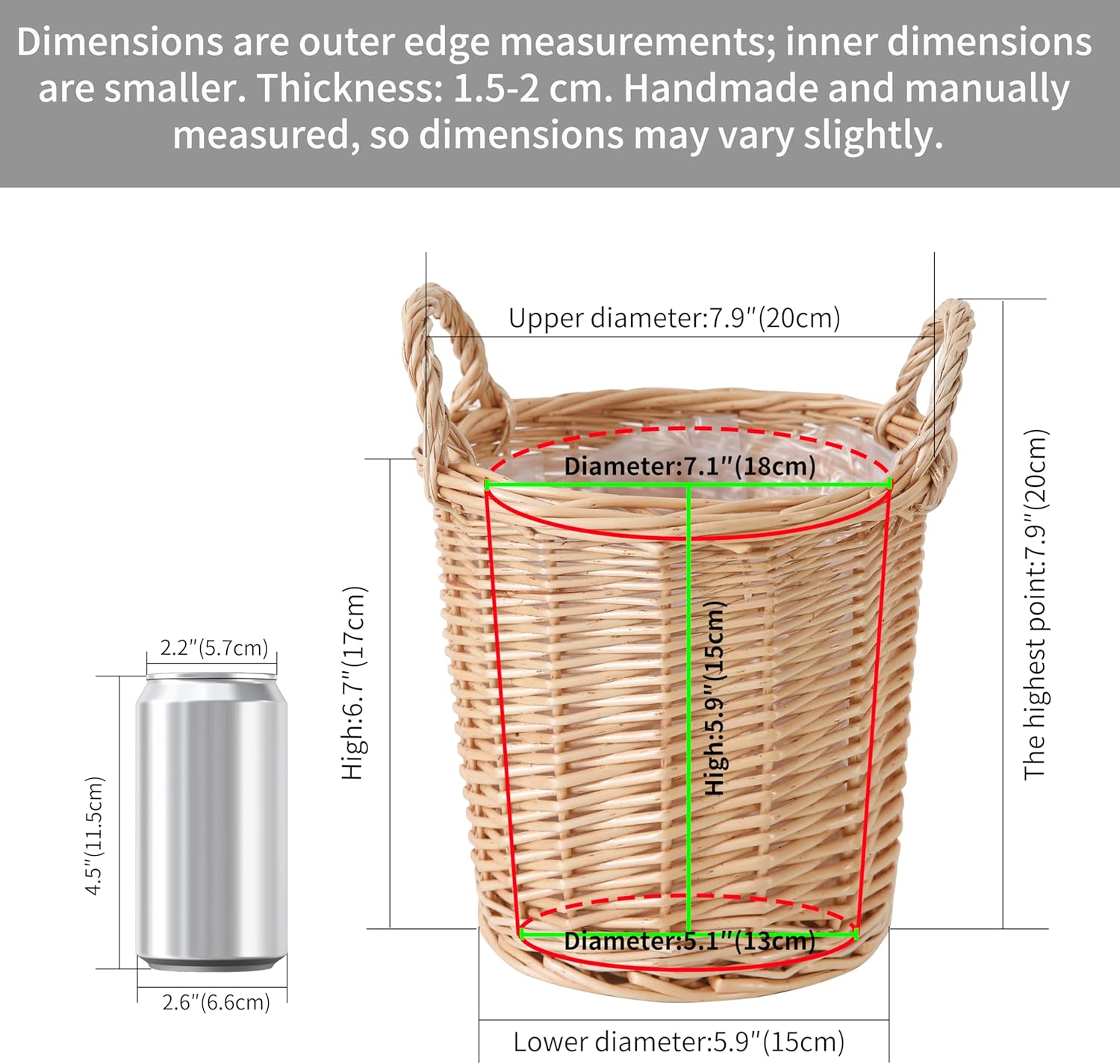 - Hand woven, with handles and reinforced joints, stable and durable. The surface has been treated to be moisture-proof.