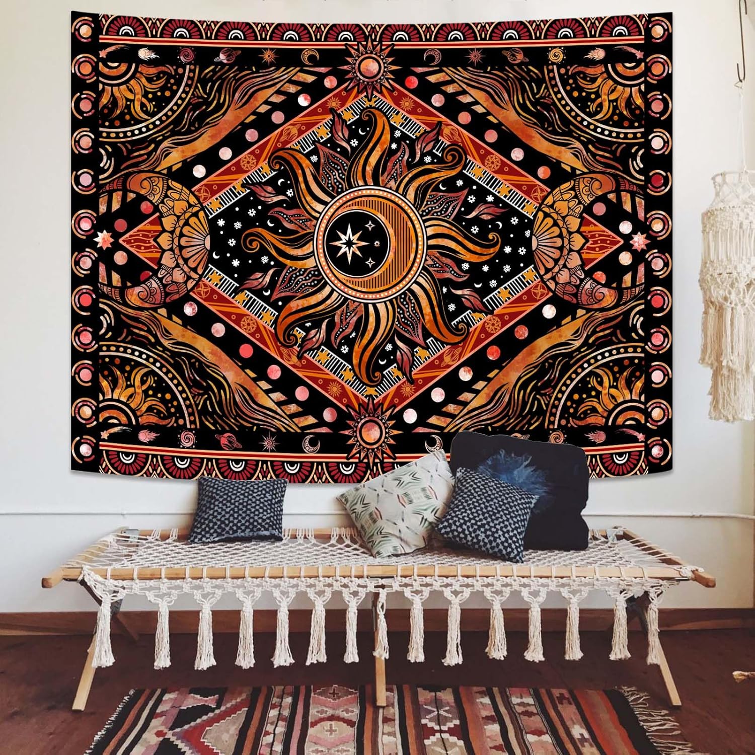 - Hippie Sun and Moon Design: This tapestry features an intricate, bohemian-inspired sun and moon design with warm, earthy tones. It captures a sense of celestial harmony and peace, adding a unique, spiritual element to any space.