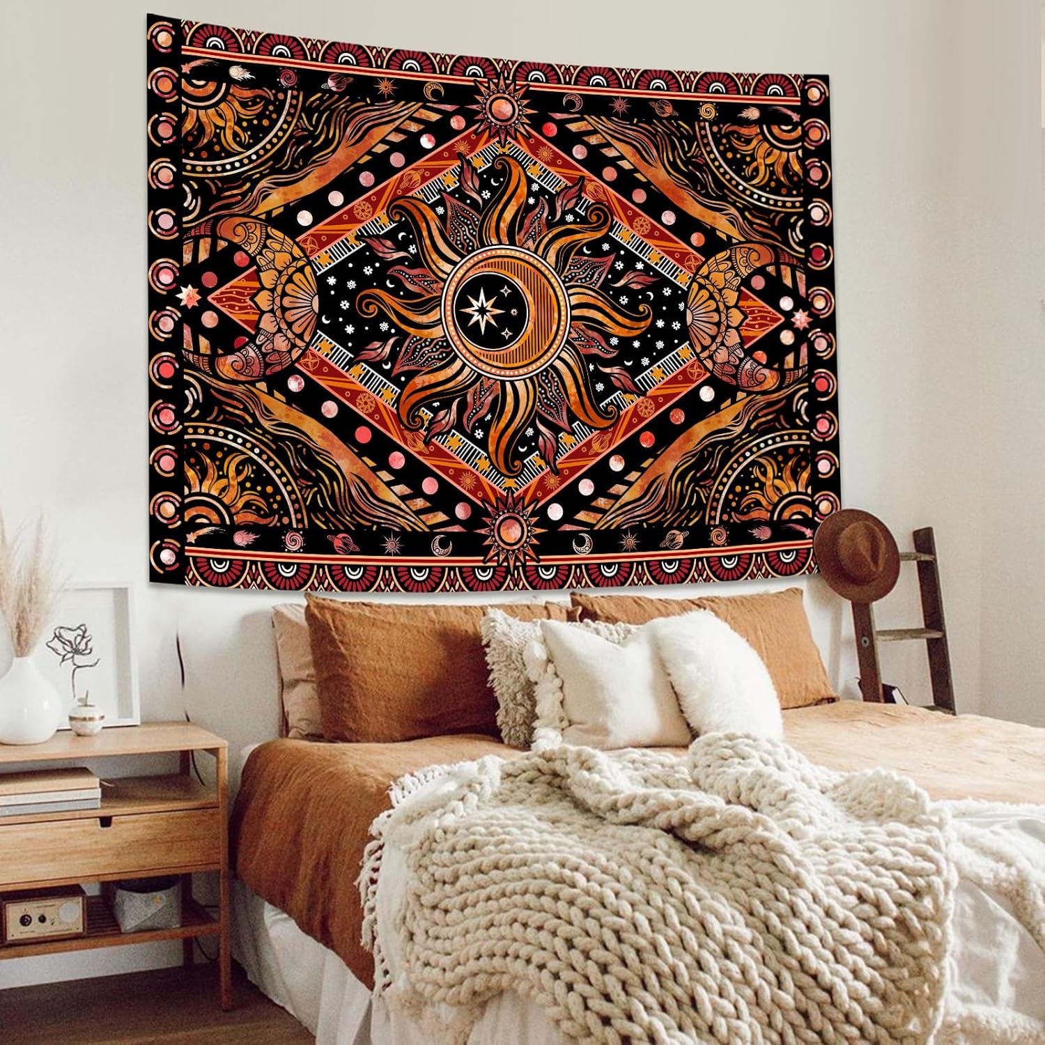 - Hippie Sun and Moon Design: This tapestry features an intricate, bohemian-inspired sun and moon design with warm, earthy tones. It captures a sense of celestial harmony and peace, adding a unique, spiritual element to any space.