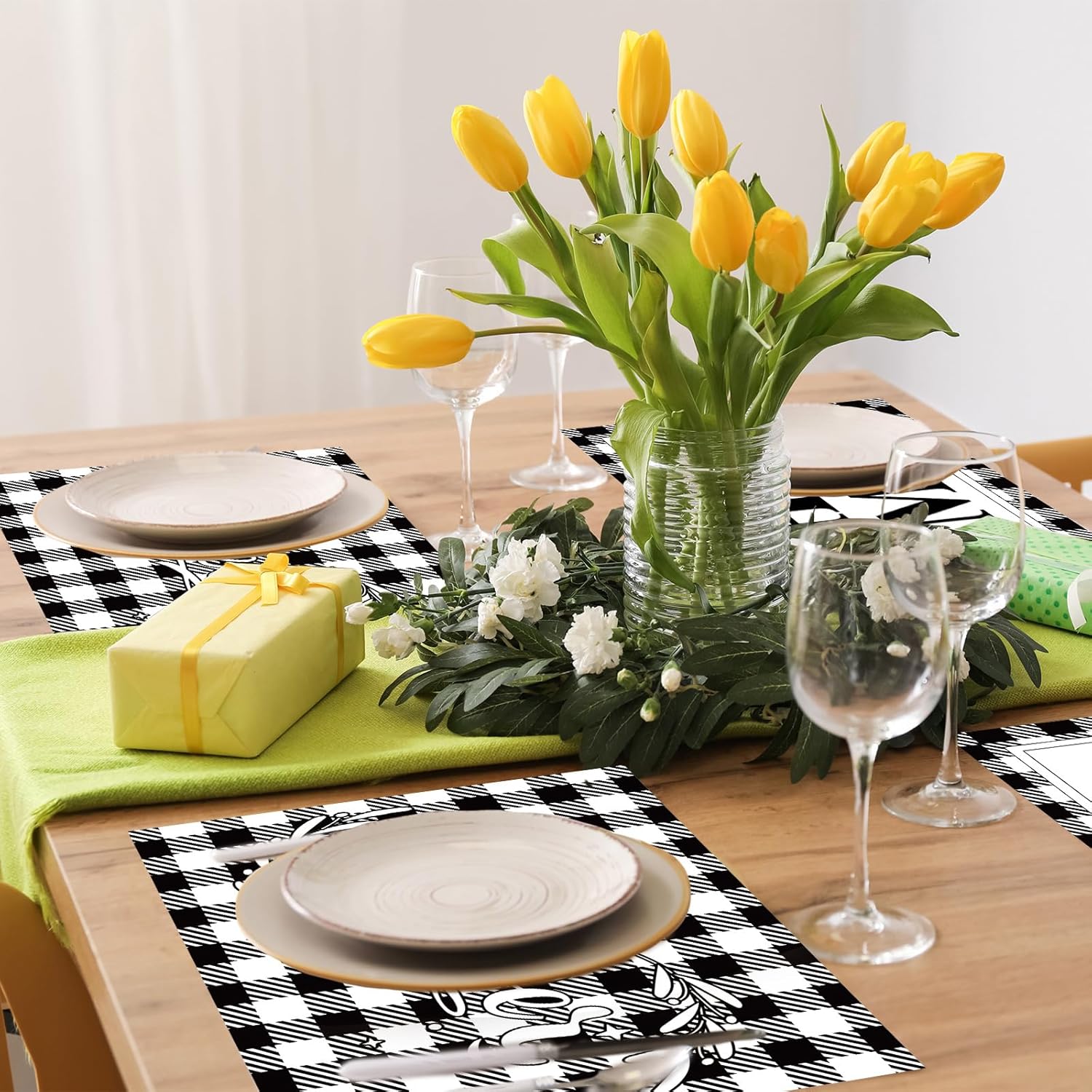 - Love family placemats set of 6: You will get 6 pieces of buffalo plaid plastic placemats. Black and white plaid plastic table mats measure 43 x 32cm/17x 13 inches, making it the ideal size to accommodate your family party and events, which allows you to easily decorate your kitchen table mats and create a stunning centerpiece for your party.